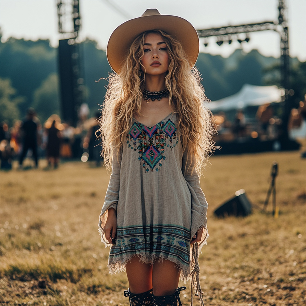 Music Festival Bohemian Festival Party Holiday Casual Retro Embroidered Dress