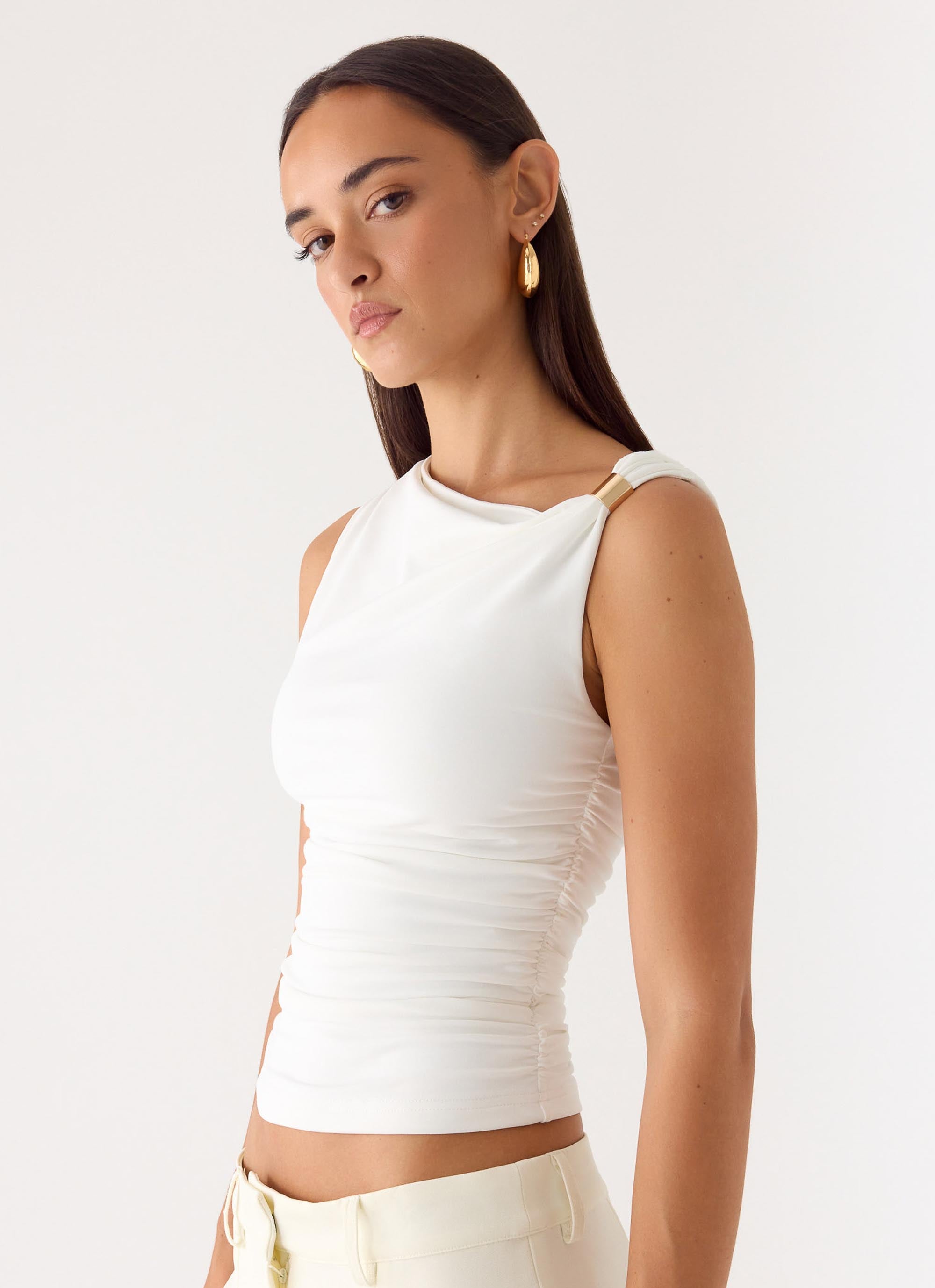 Women's Elegant Slim Fit Stretch Camisole Sexy Drawstring Spaghetti Strap Vest