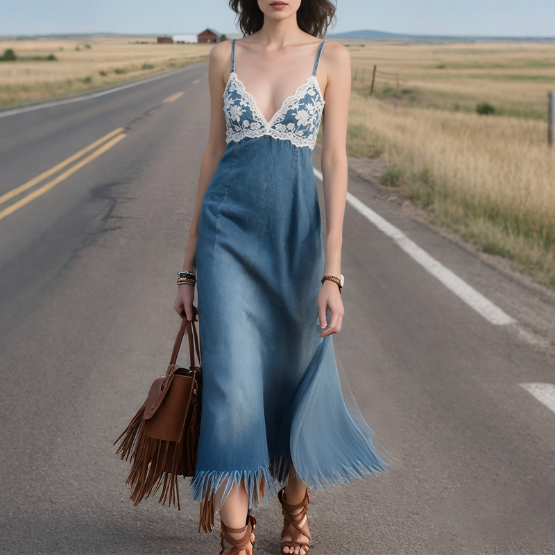 Women's Summer Retro Loose And Comfortable Bohemian Suspender Dress Long Skirt