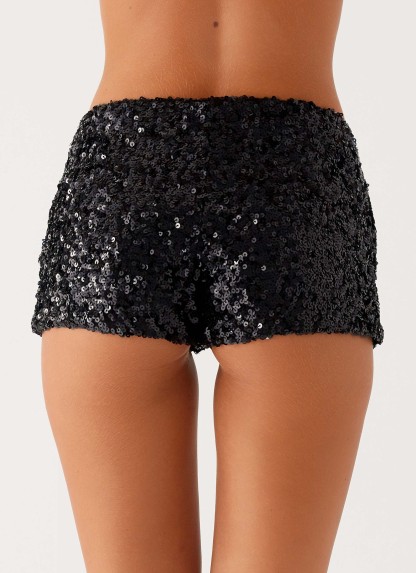 After Midnight Low Rise Sequin Mini Shorts - Black