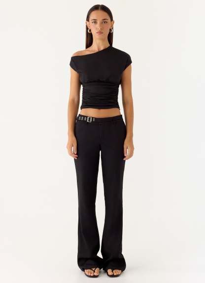 The Anaiis Low Rise Pant is designed for sleek, modern styling with a tailored, straight-leg silhouette. Featuring a low-rise waistline and buckle belt detailing, these lightweight suiting pants offer polished sophistication with effortless ease. Structured, refined, and versatile, they’re perfect for day-to-night dressing.