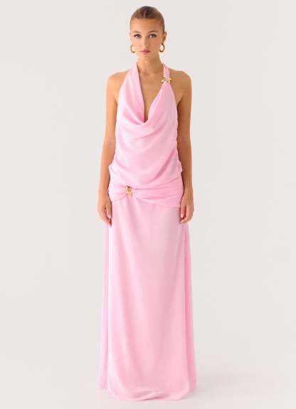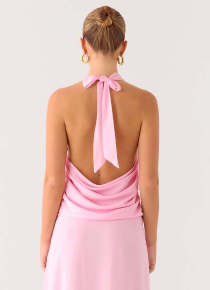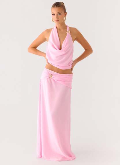 The Anuhea Cowl Top is made for those warm nights that stretch till dawn. Featuring a low front cowl and halter neckline, it’s crafted from lightweight chiffon with ruched sides for added texture. Fully lined and finished with a front metal detail and low back, it’s a chic choice for after-dark moments.