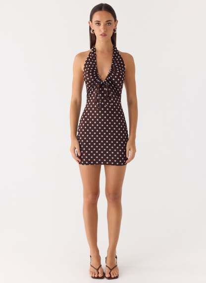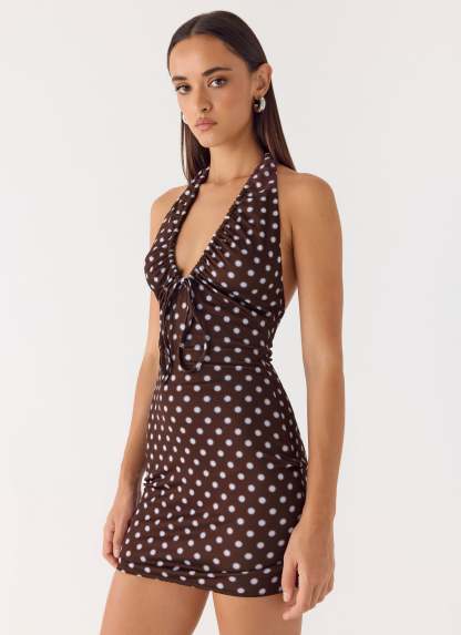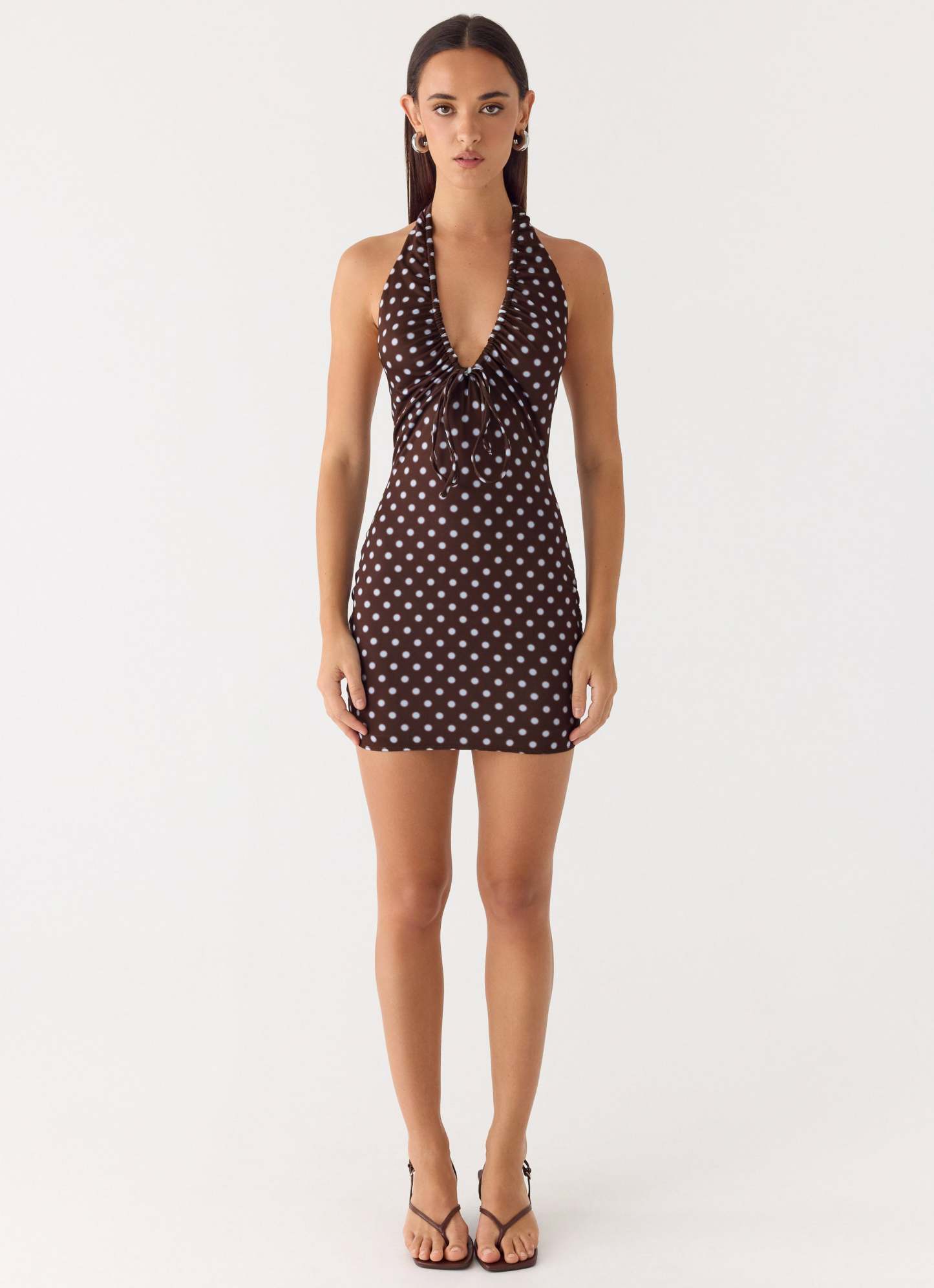 Ask You Twice Mini Dress - Chocolate Blue Dot