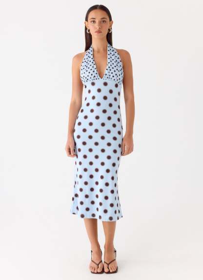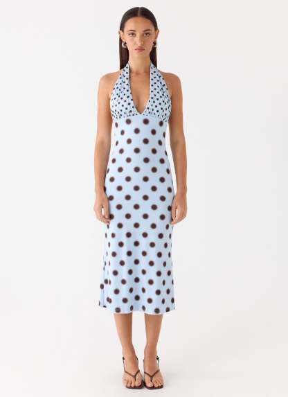 Awuku Midi Dress - Blue Mocha Dot