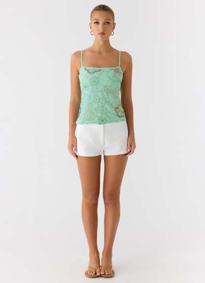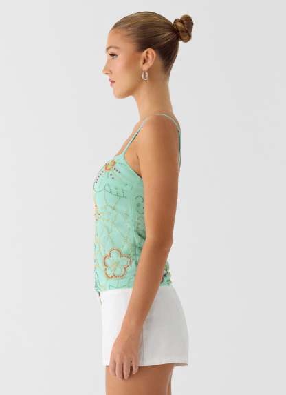 Be Alright Beaded Top - Turquoise