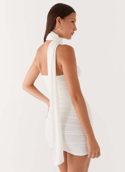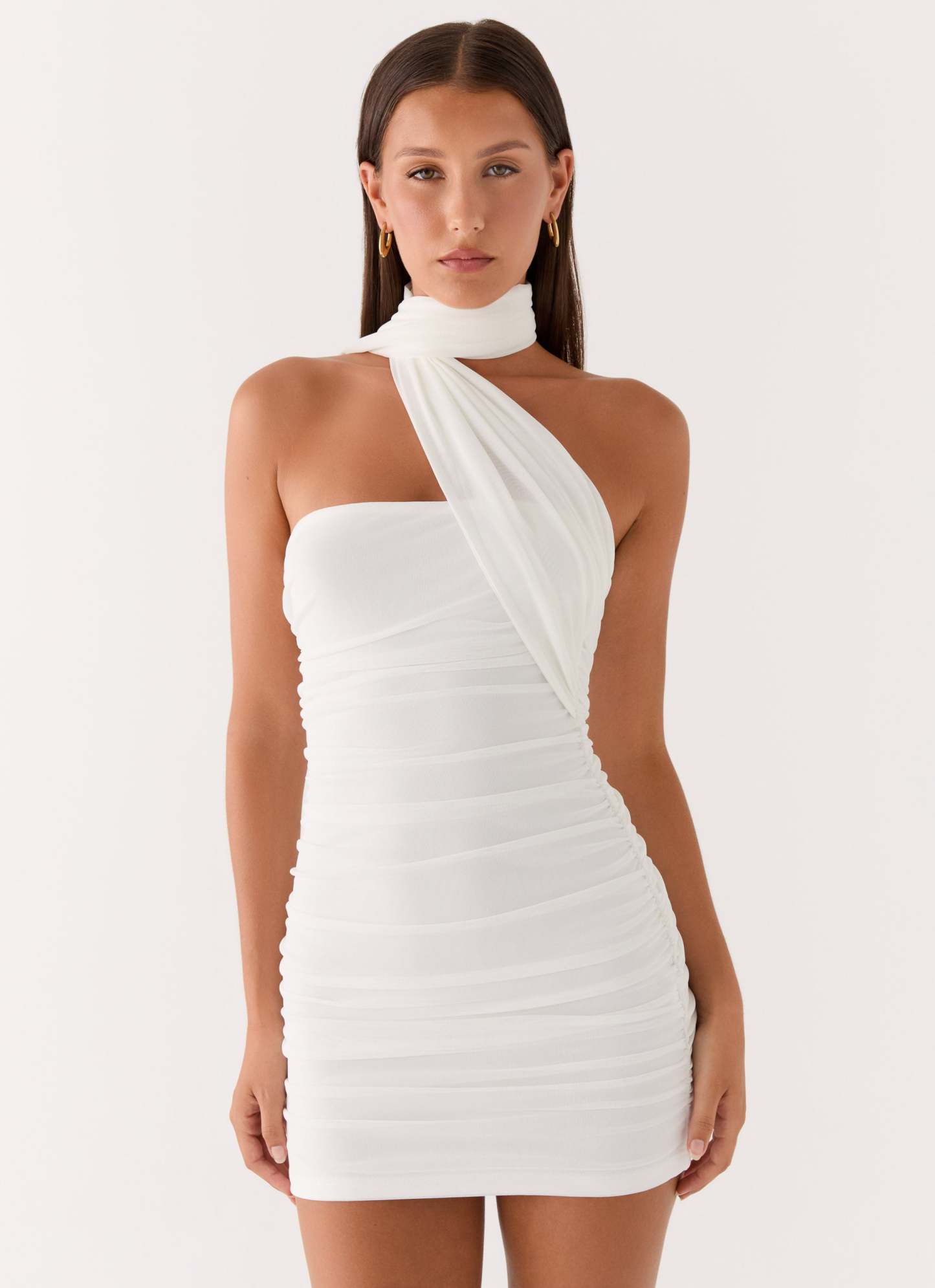 The Breaking News Mini Dress is made for unforgettable nights out and sunset-to-sundown allure. Crafted from a stretch slinky mesh that hugs every curve, it features a chic strapless neckline and flattering ruched sides for a sleek, feminine silhouette. Finished with a versatile attached wrap scarf, this self-lined micro mini is designed for effortless after-dark style.