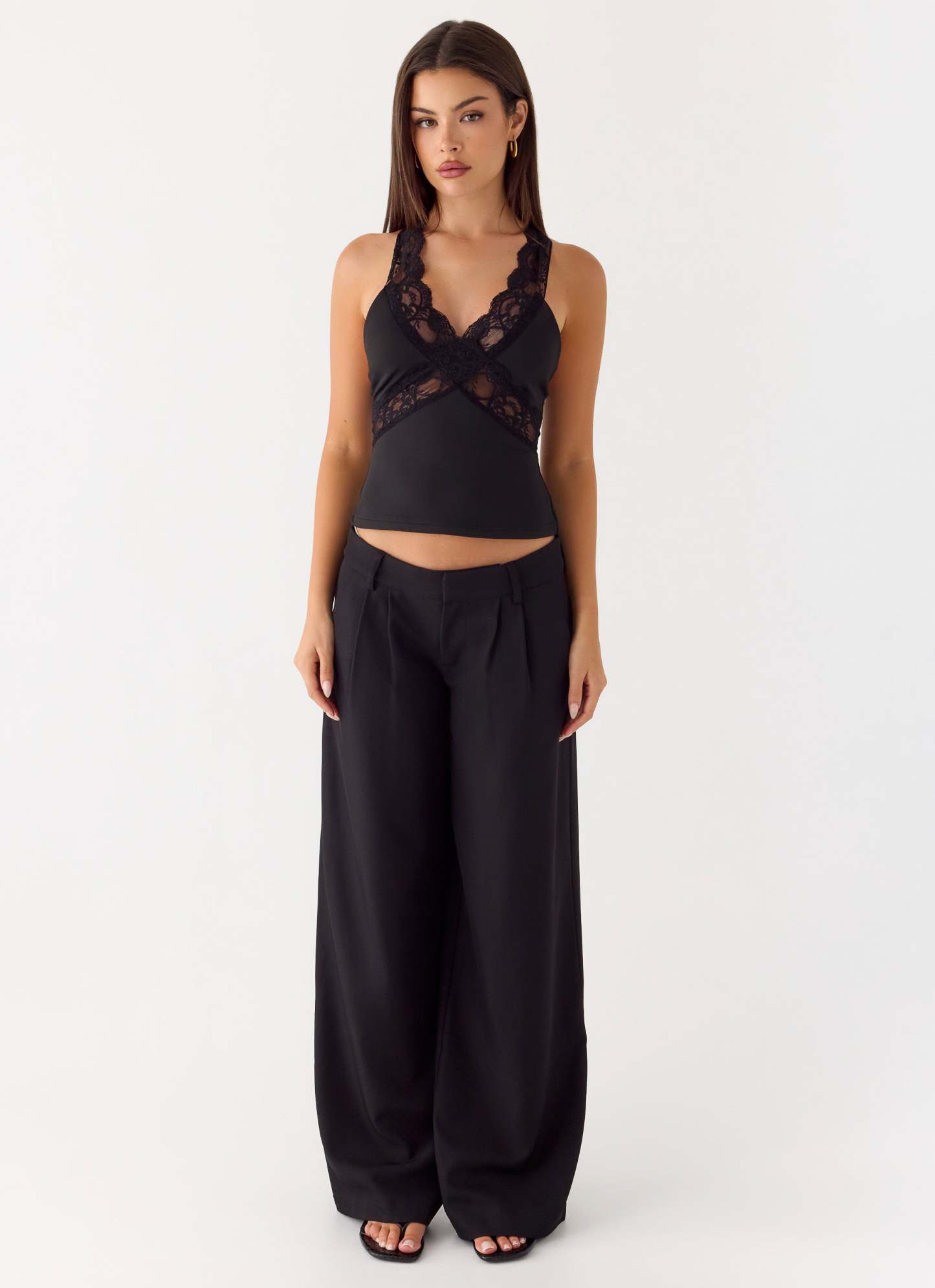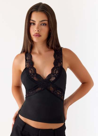 The Calandra Top is a delicate statement piece with a romantic, lace-covered silhouette. Featuring a V-neckline and intricate back crossover detailing, it hugs the body with stretch lace while remaining lightweight and semi-sheer. Fully lined for comfort, it’s perfect for evenings that call for effortless, feminine elegance.