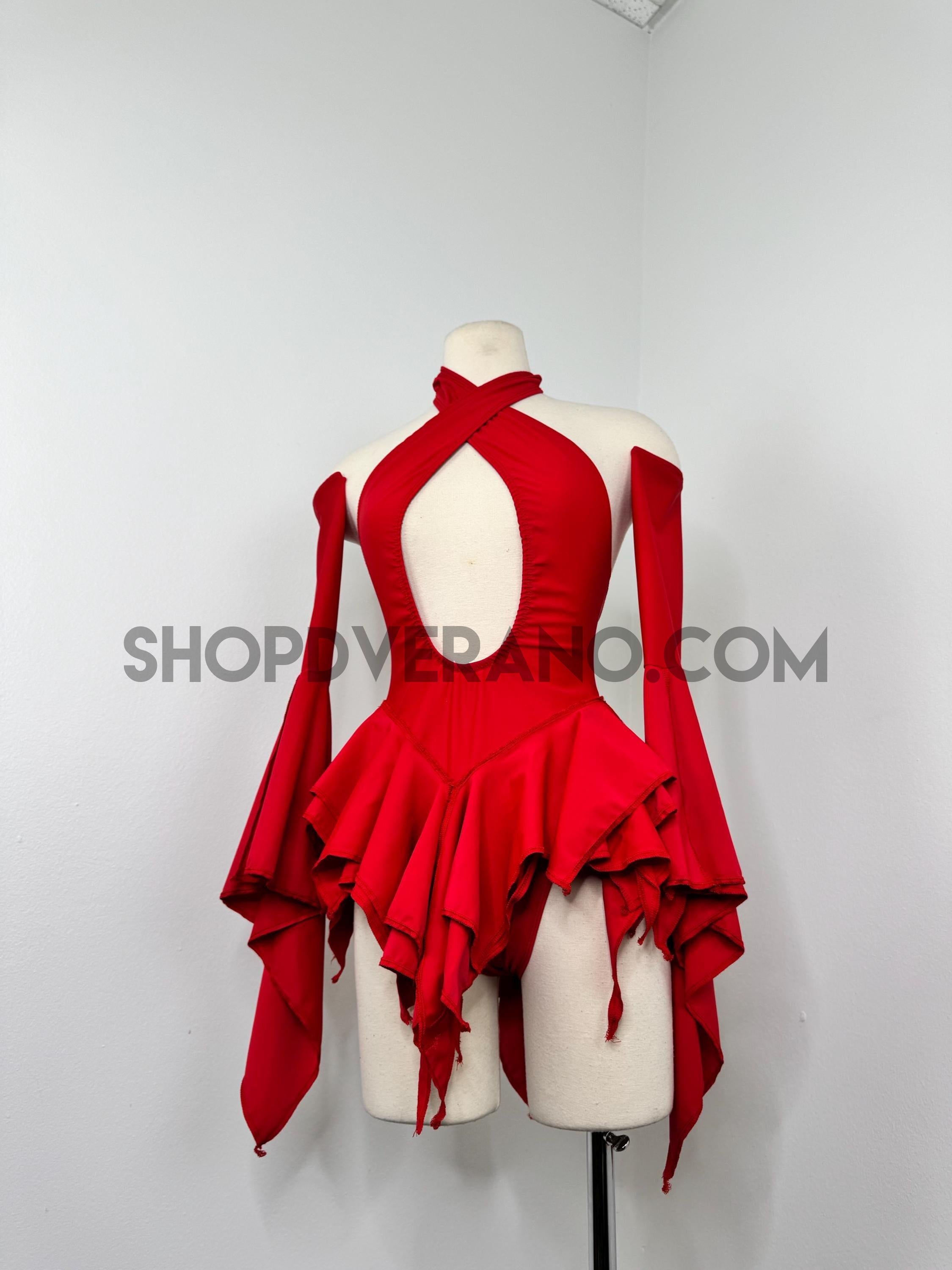 This striking all-red design channels raw rave power with a sculpting, fairy-inspired silhouette that commands attention with every step, spin, and beat drop.
