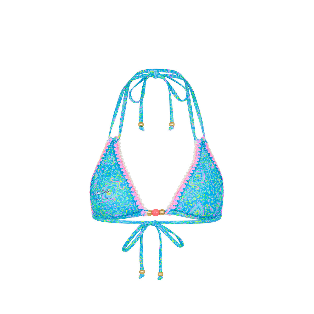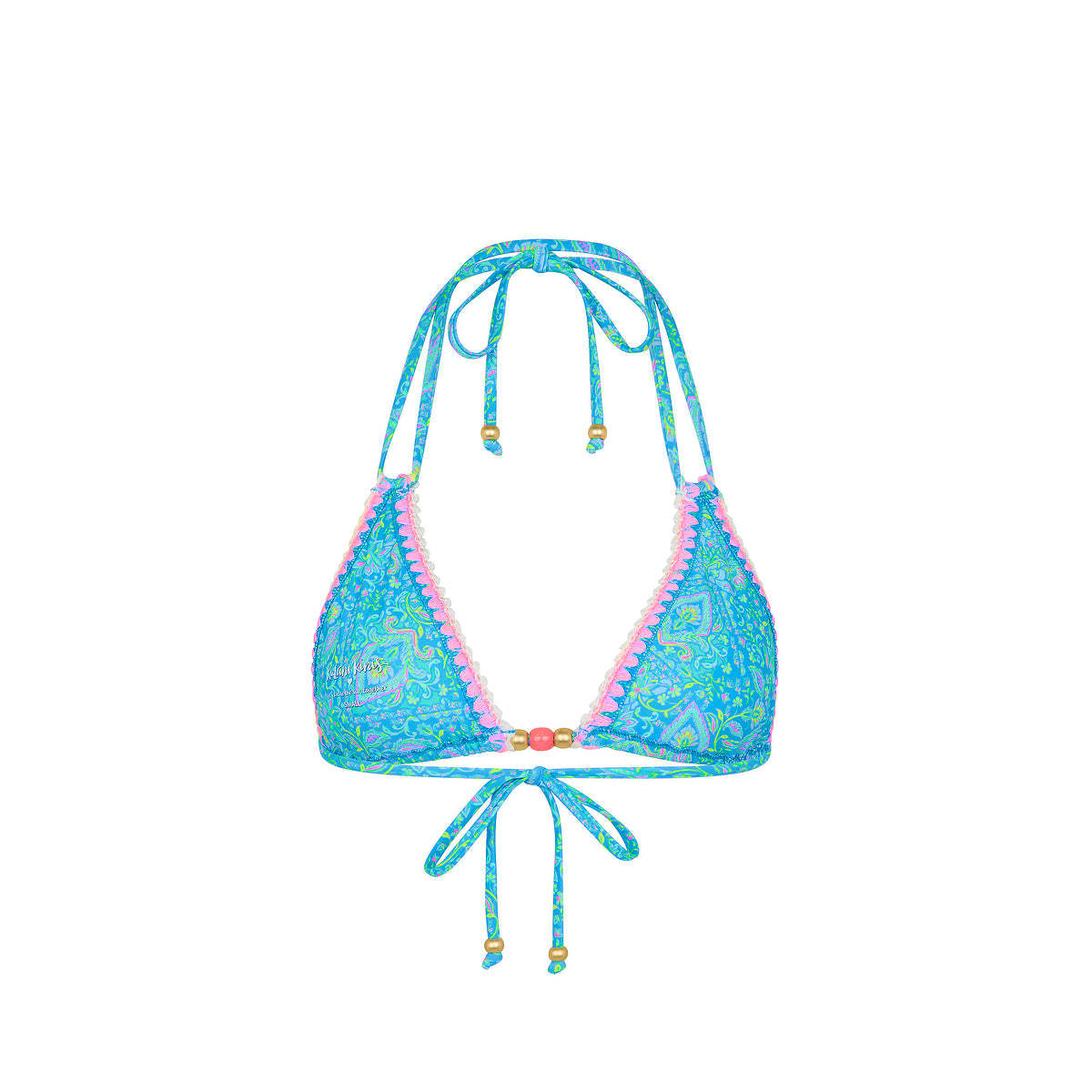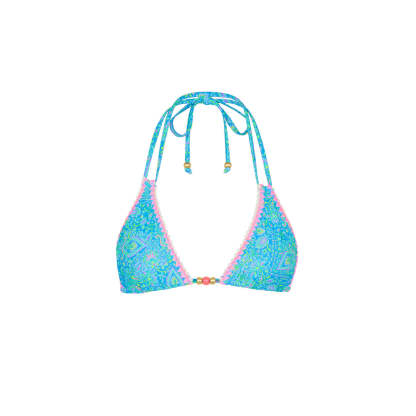 Its all about the details! With delicately stitched crochet trim, this flattering halter neck style is loved for its strong lift, adjustability, and luxe vibe!