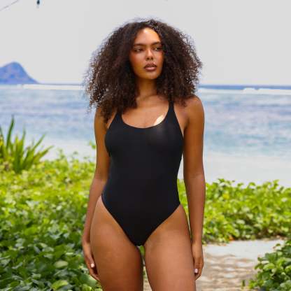 Cross Back Cheeky One Piece - Twilight Black