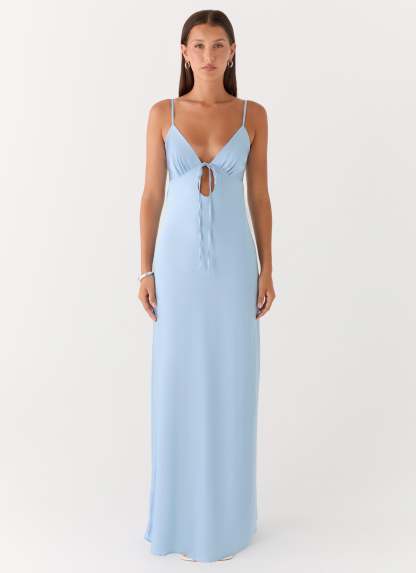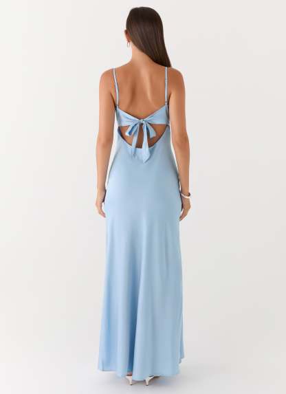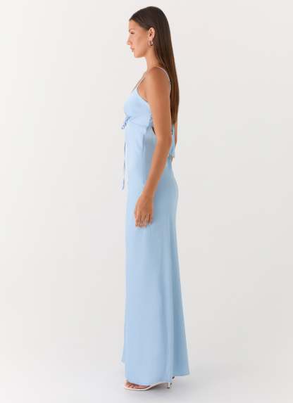 Flora Satin Maxi Dress - Ice Blue