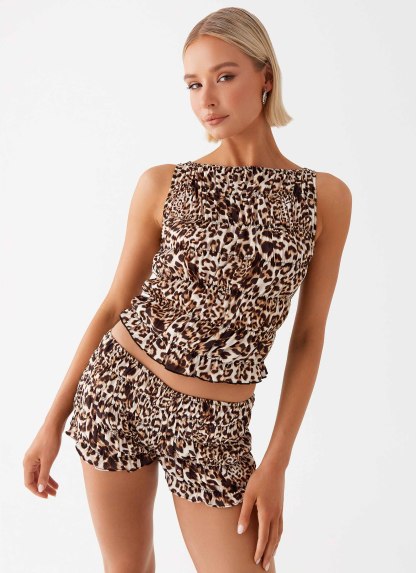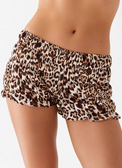 Girls Like Us Ruched Mini Shorts - Leopard
