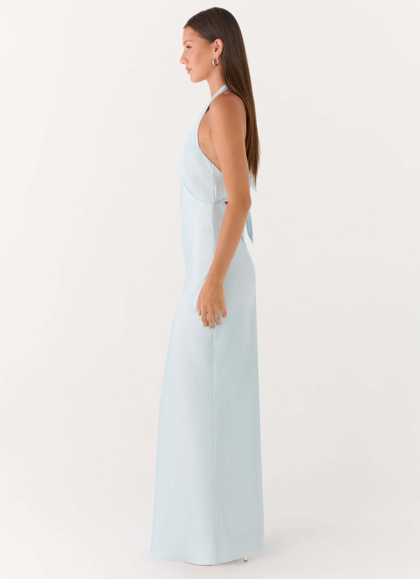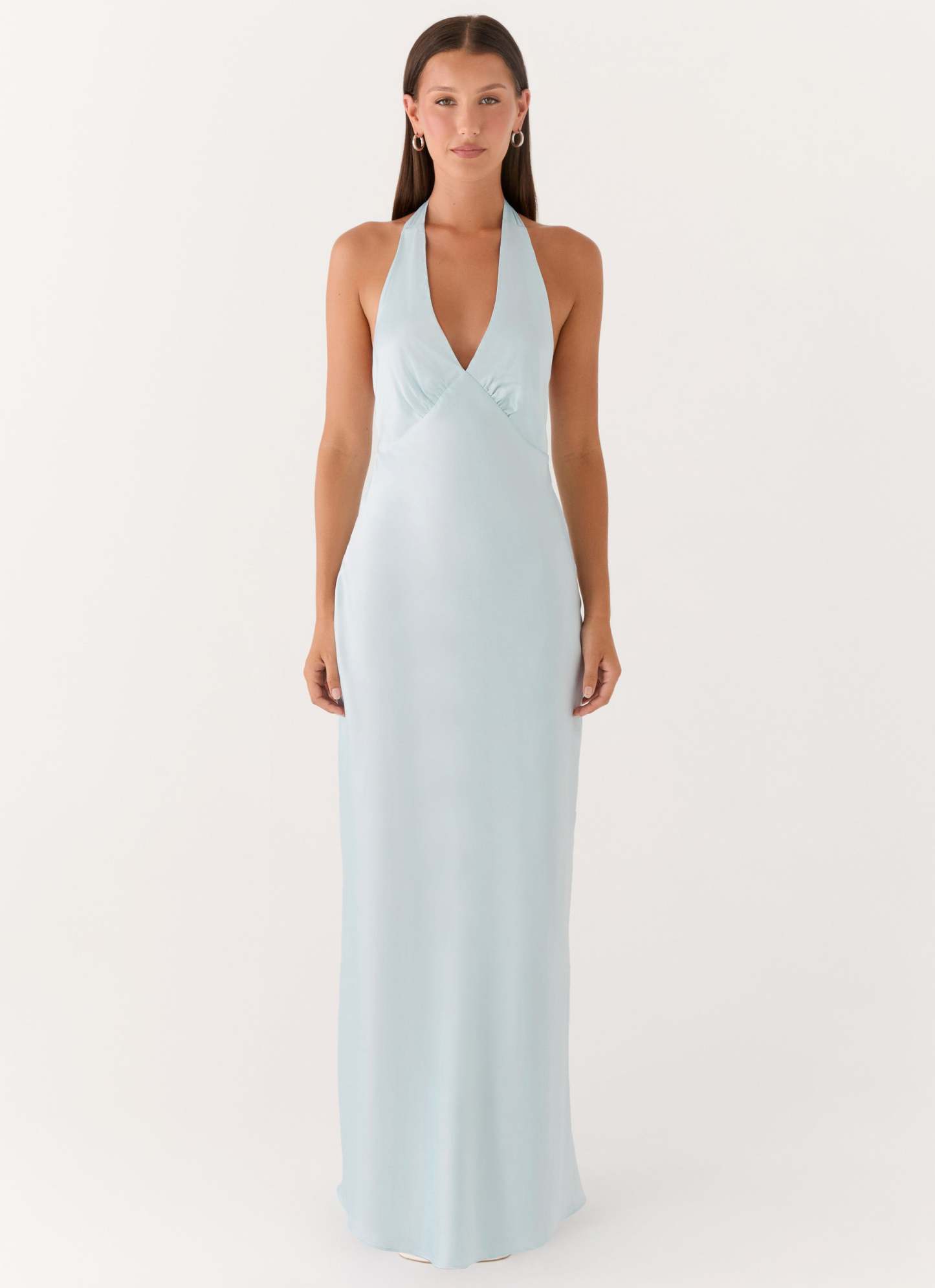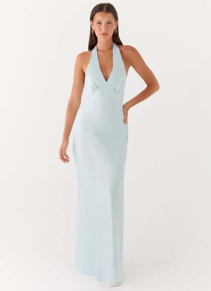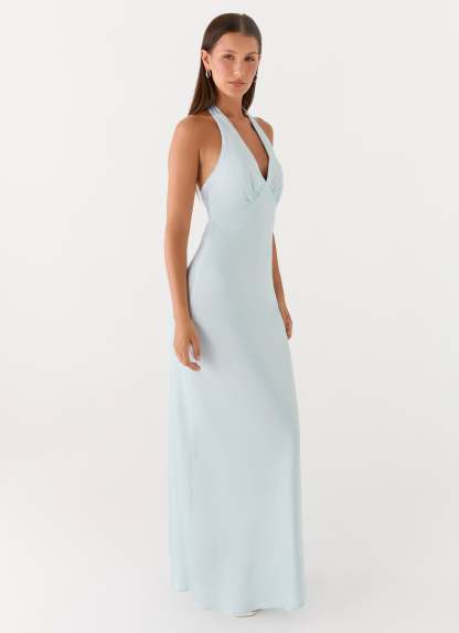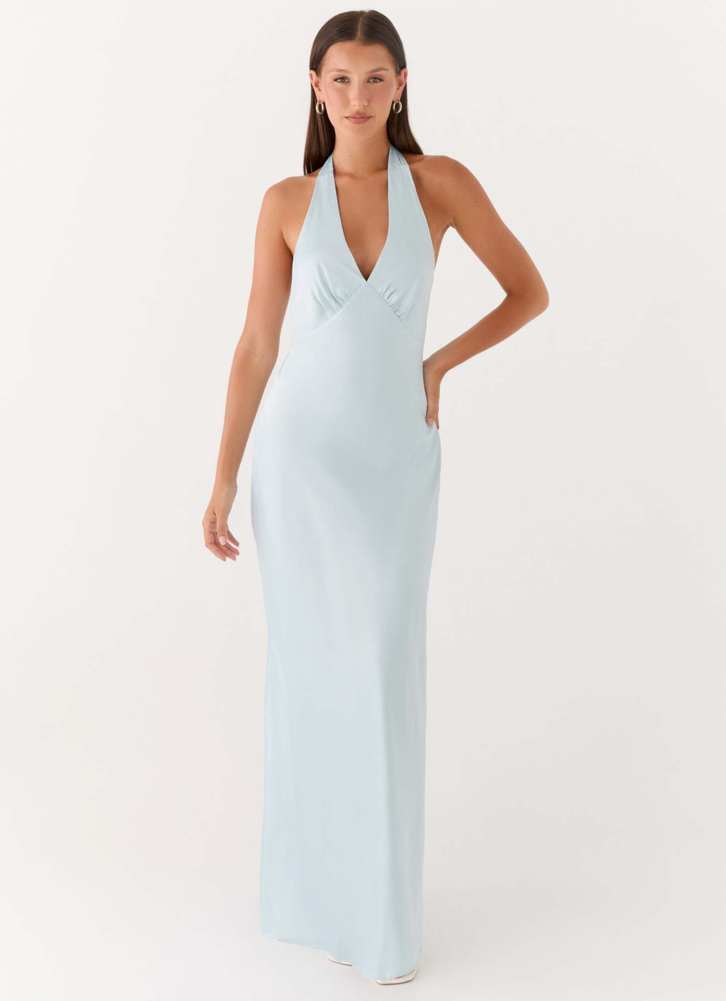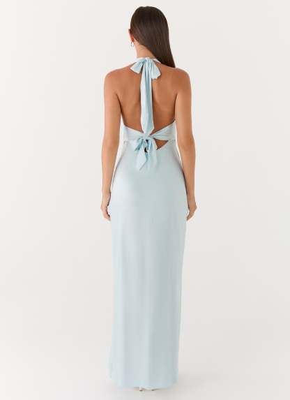 Heavy Hearted Satin Maxi Dress - Ice Blue