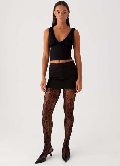 Enhance your evening look with the Honor Lace Stockings. Featuring a black lace-like material, these stockings add a touch of elegance and allure, perfect for complementing any outfit with a hint of sophistication.