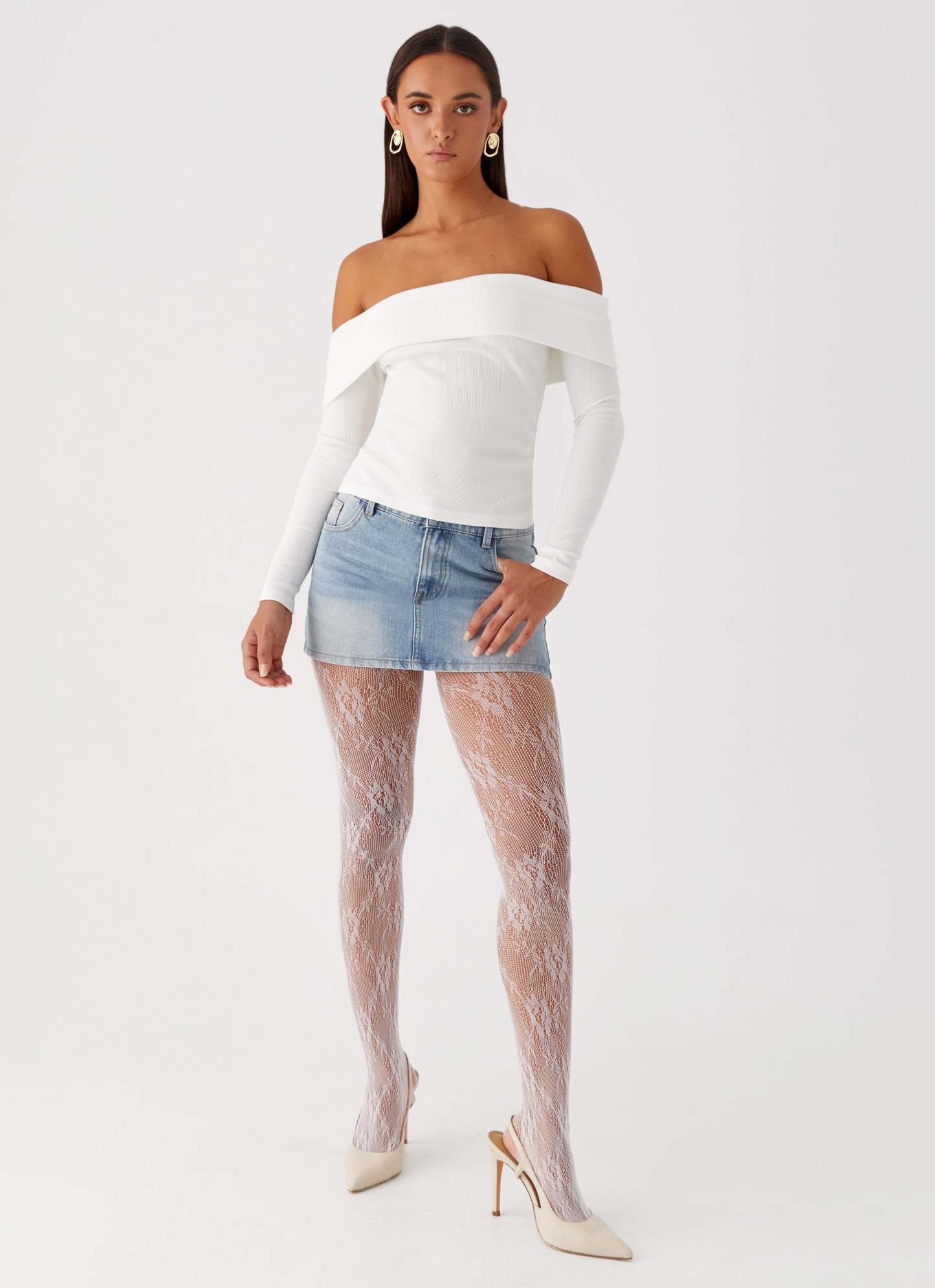 Enhance your outfit with the Honor Lace Stockings. In classic white with a lace-like material, these stockings add a touch of elegance and sophistication, perfect for completing your evening look with a hint of allure.