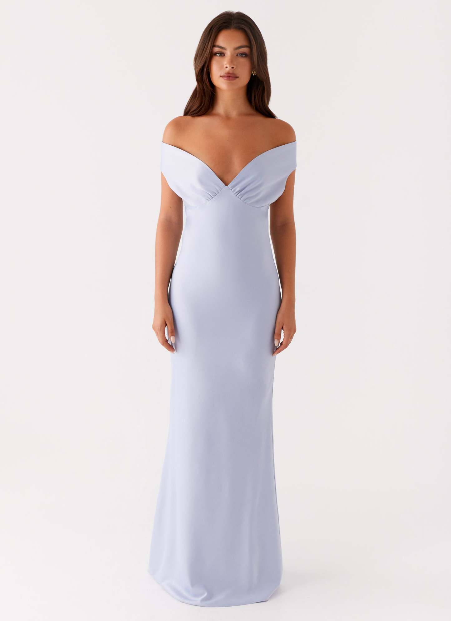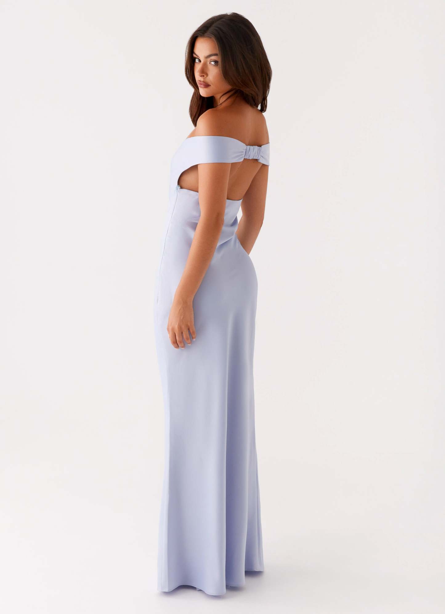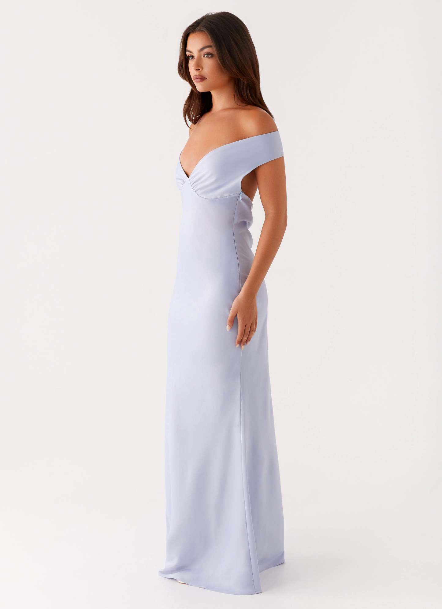 The Jenner Maxi Dress is your go-to for captivating evening elegance. Featuring an off-shoulder neckline and full-length silhouette, this dress drapes effortlessly, creating a refined yet sultry look.