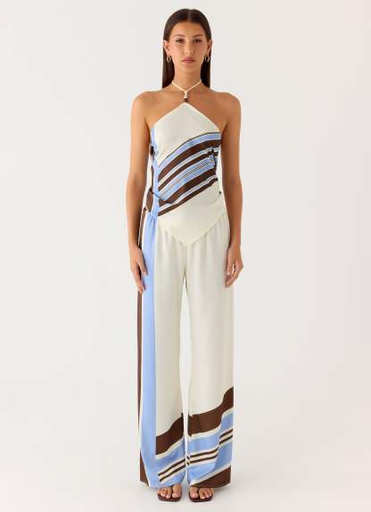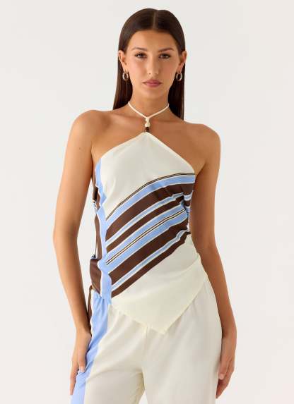The Julissa Halter Top features beaded straps and an open back for a touch of playful elegance. Designed with an exclusive print, this piece offers a flattering silhouette, with each garment boasting a one-of-a-kind print placement for a personalized style statement.