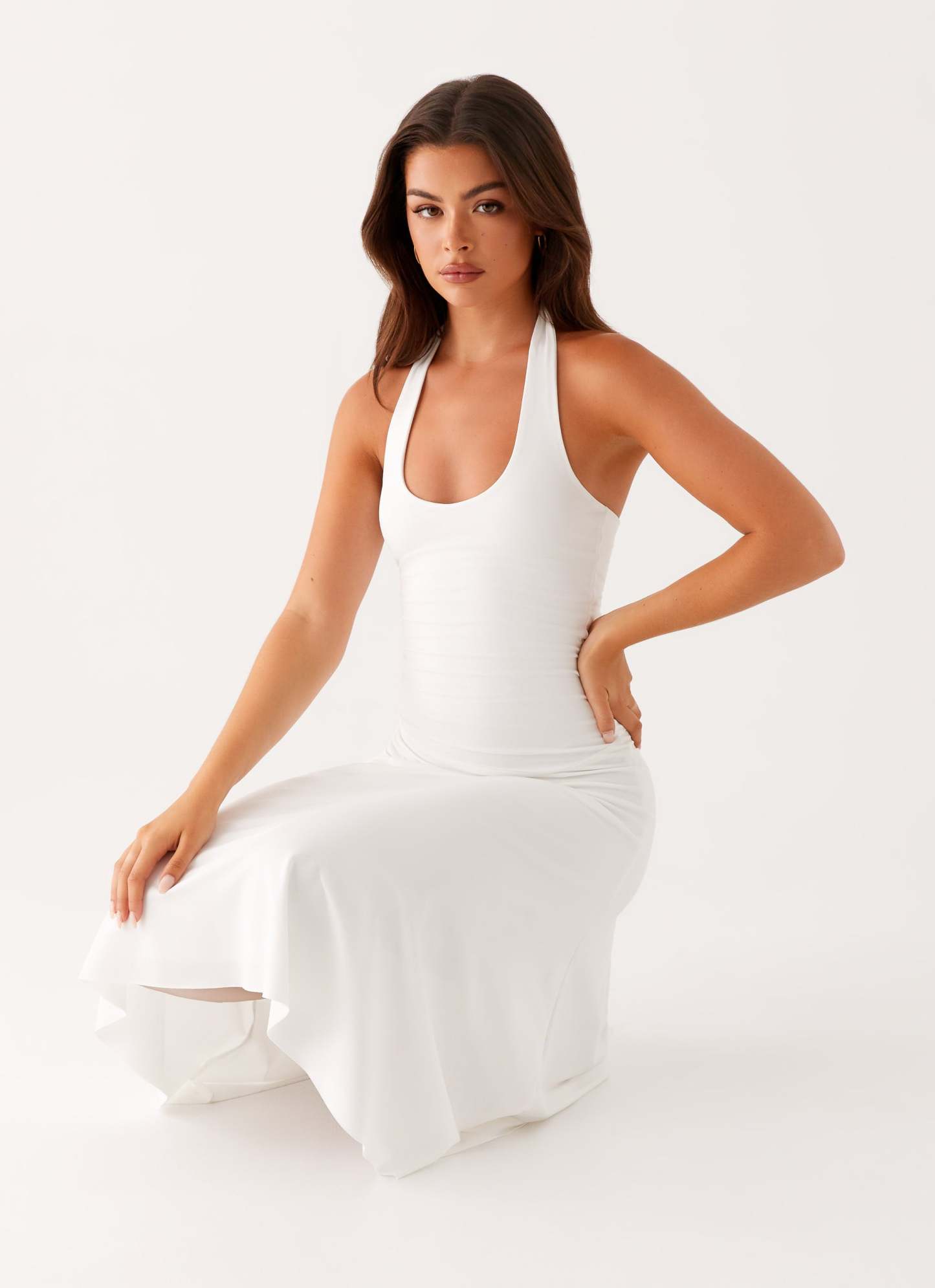 The Klyne Midi Dress is designed for ultimate comfort and style, featuring a rounded neckline and low back. The stretch jersey material hugs your curves, while the self-lined flare skirt adds movement and flow to this flattering silhouette, perfect for a night out or a casual day event.