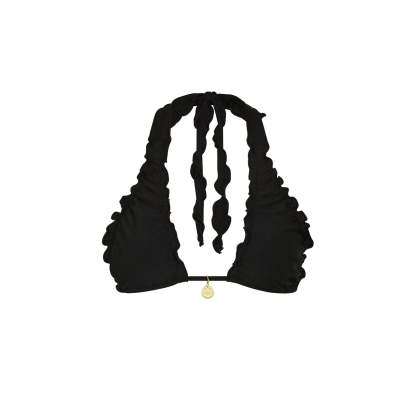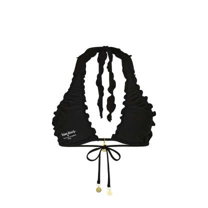 Lettuce Edge Halter Bikini Top - Twilight Black