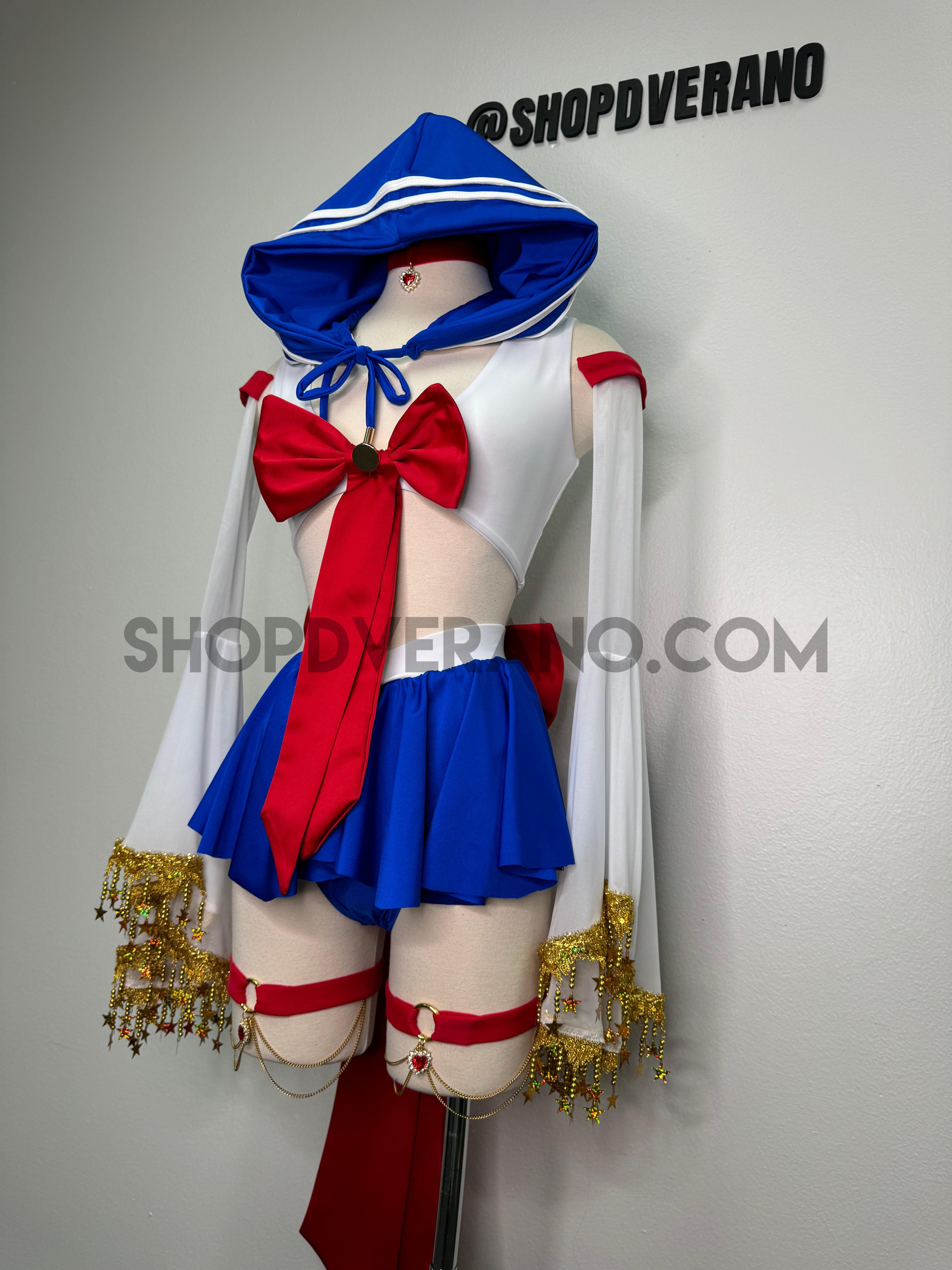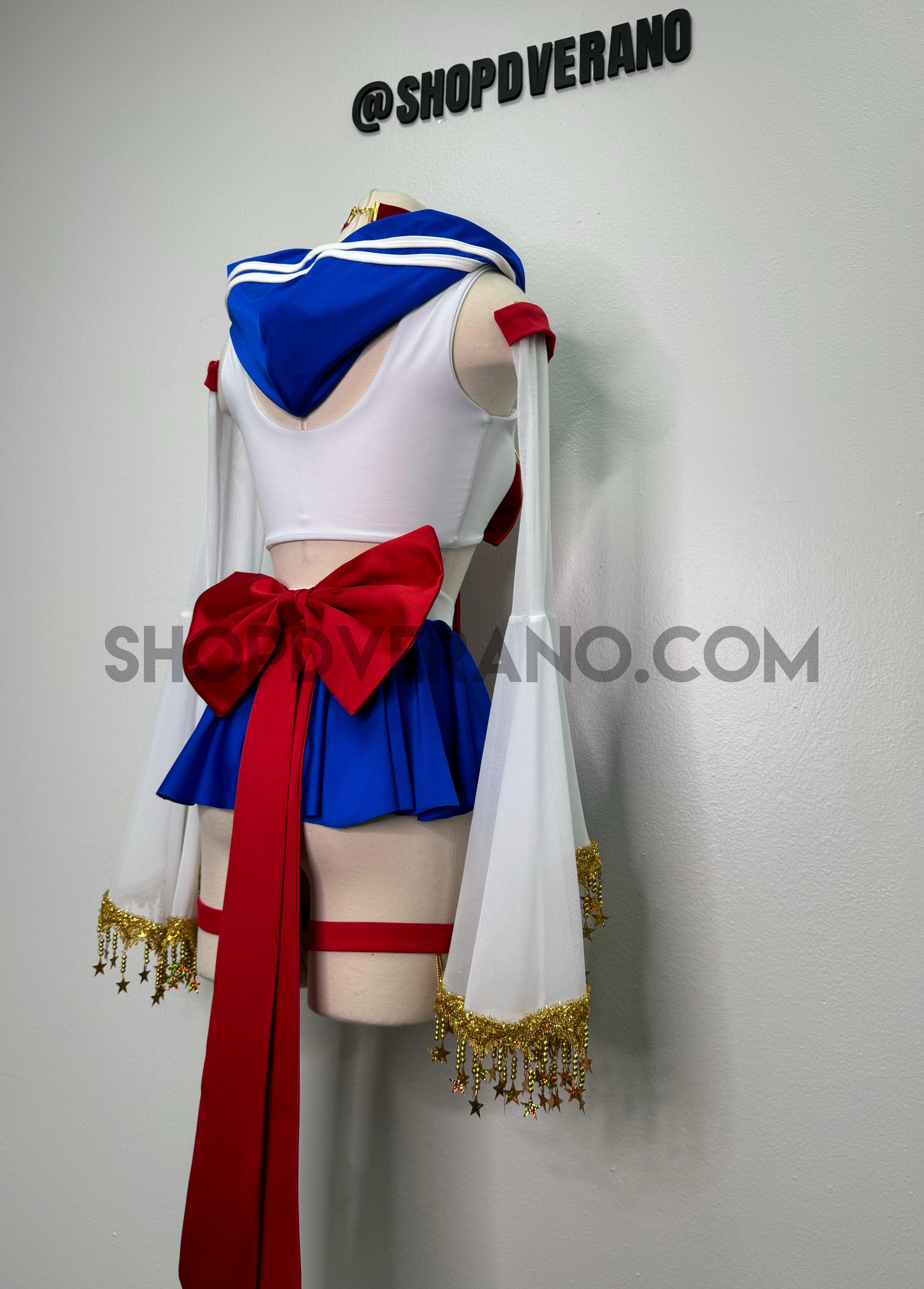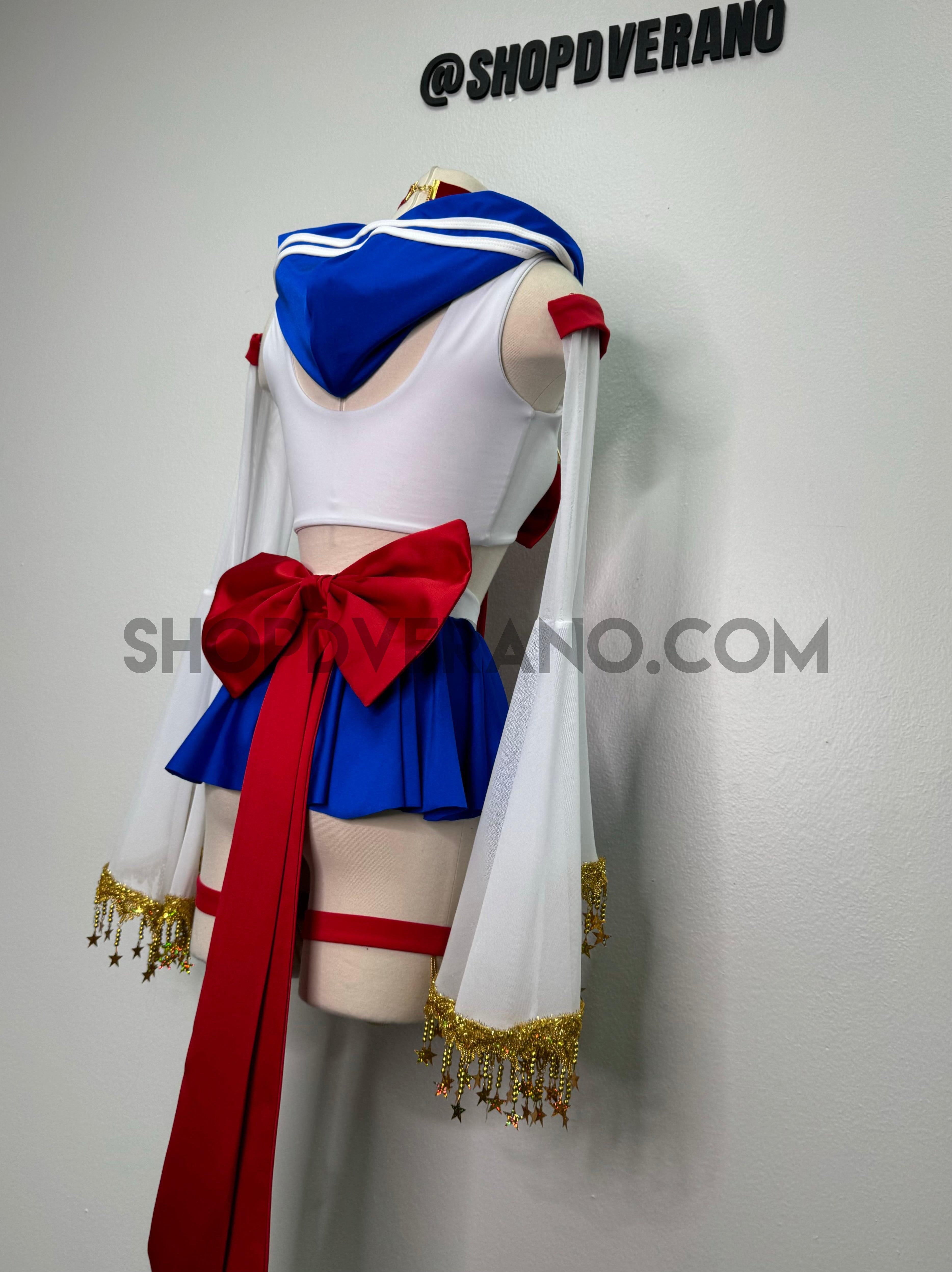 Whether you're gearing up for Halloween, hitting up a convention, or dancing the night away at a rave, the Lunar Sailor Set is your perfect choice to shine bright and make an unforgettable impression. Step into the spotlight and let your inner star sparkle!