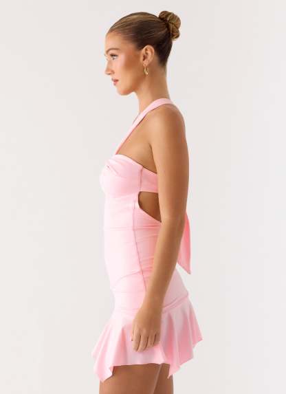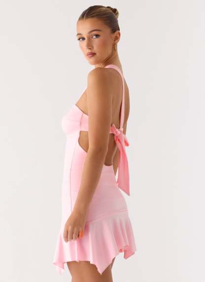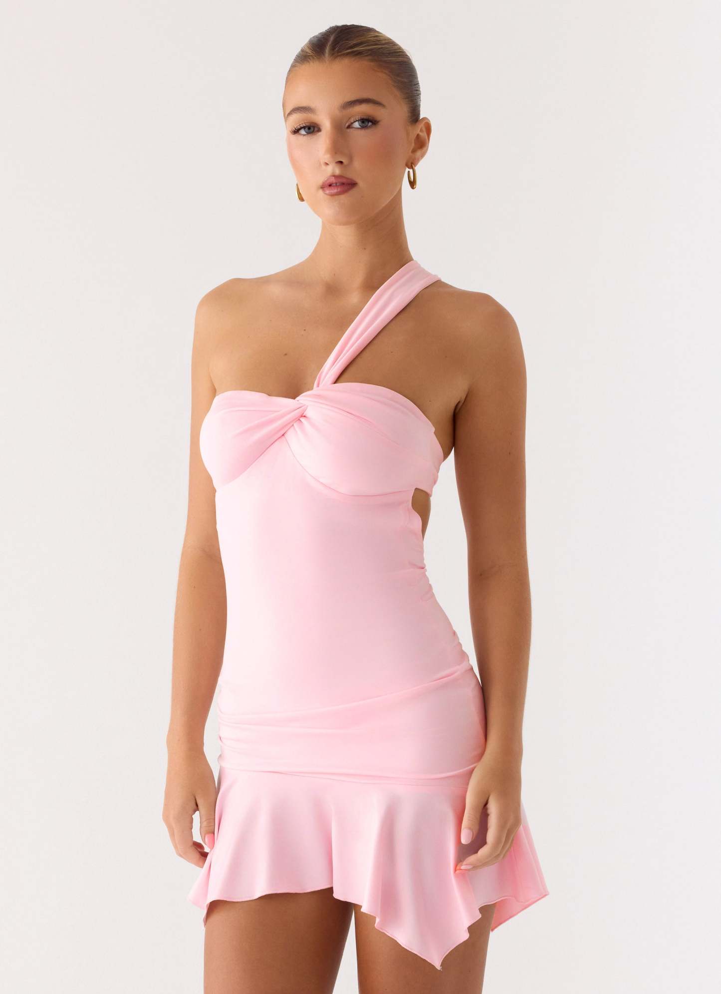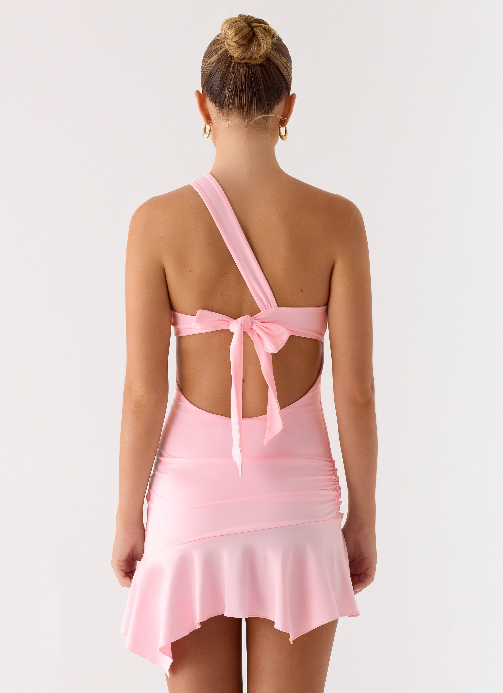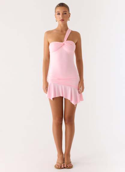 The Not Your Fan Cut Out Mini Dress is made for bold evenings and golden hour moments that linger into the night. Featuring a sweetheart neckline, one shoulder strap, and ruched side, this mini-length stretch jersey silhouette moves effortlessly while exuding confident, playful energy. Finished with an asymmetrical hemline and low back with thick tie-back strap, it’s designed to turn heads from sunset to after-dark occasions.