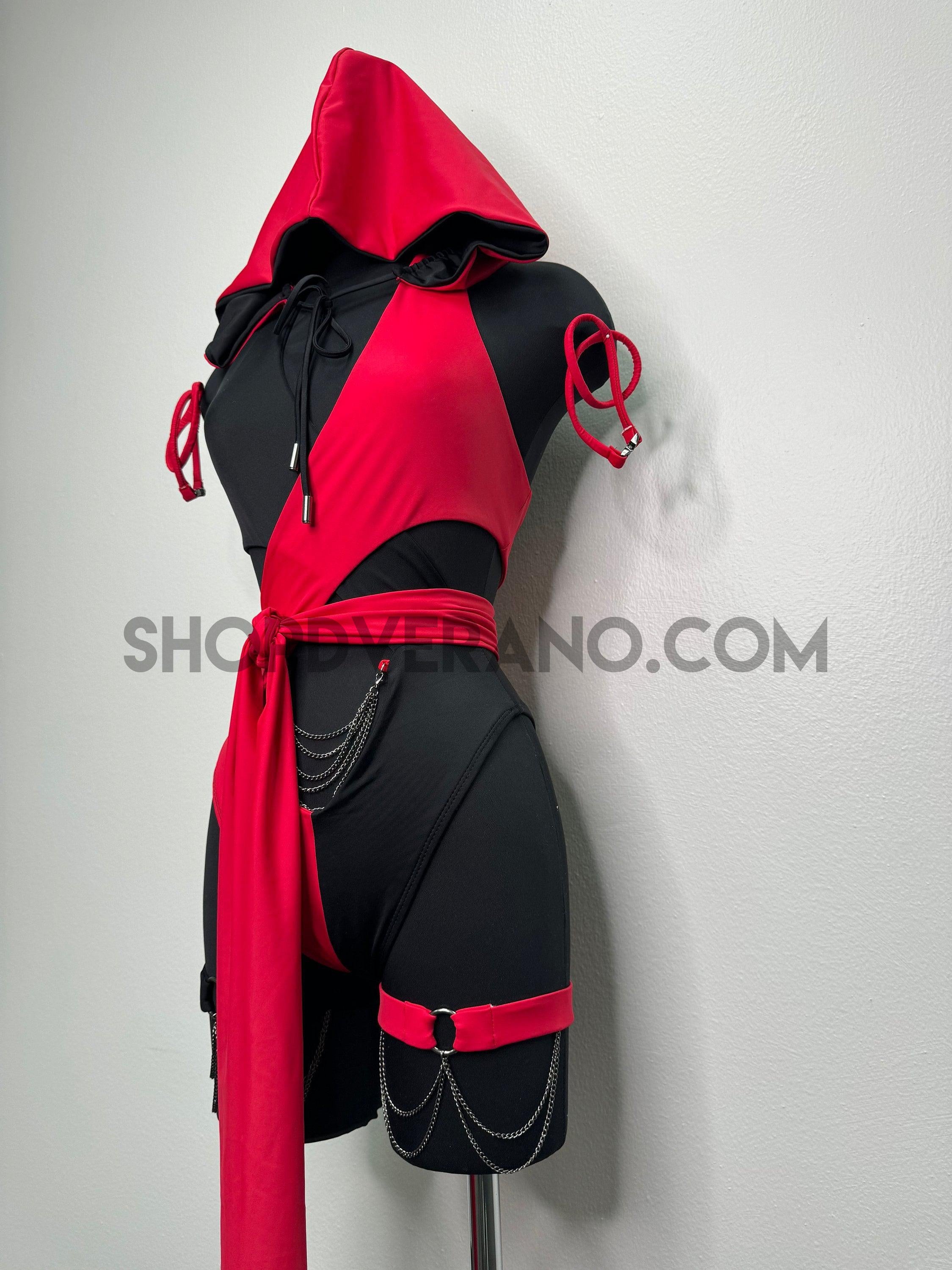 Introducing our new Nyx Ninja Rave Set the perfect festival set to elevate your party game. Made from high-quality Lycra Spandex material, this rave suit is designed to hug your curves in all the right places while ensuring breathability for hours of dancing and partying. It comes in a complete set, including unique bodysuit with waist band tiesble belt, leg accents, arm cuffs, and a removable hoodie, to add the perfect touch. This festival outfit is available in XS-4X sizes, making it a versatile option for all body types.