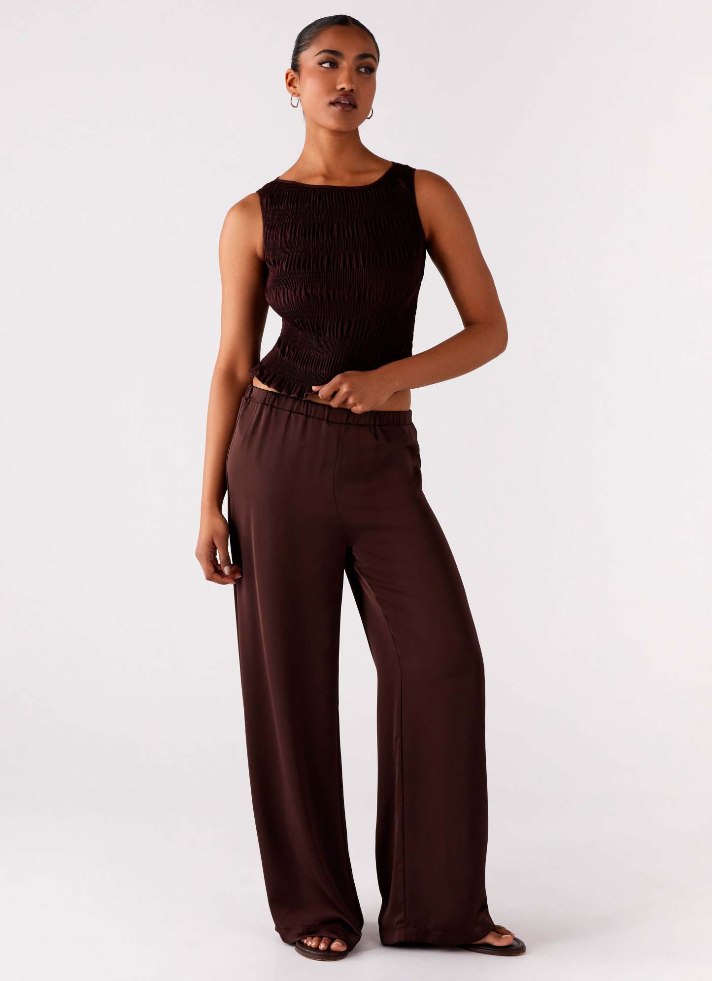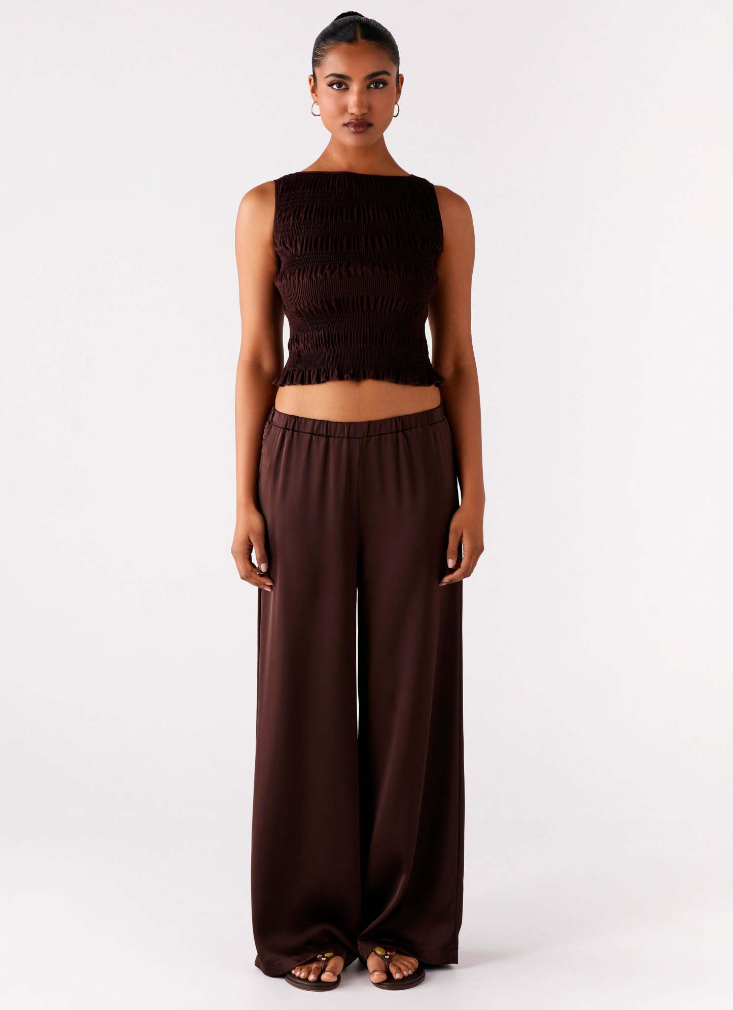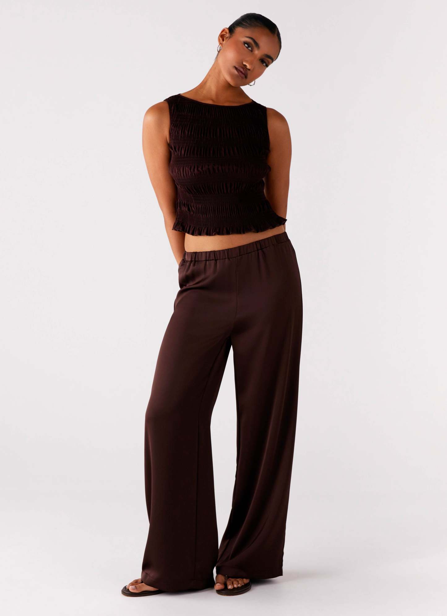 Palm Cove Satin Pants - Chocolate