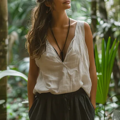 Simple V-neck Sleeveless Shirt, Loose, Comfortable And Breathable Top