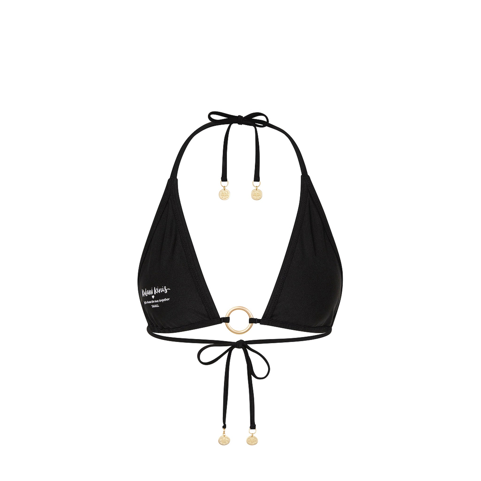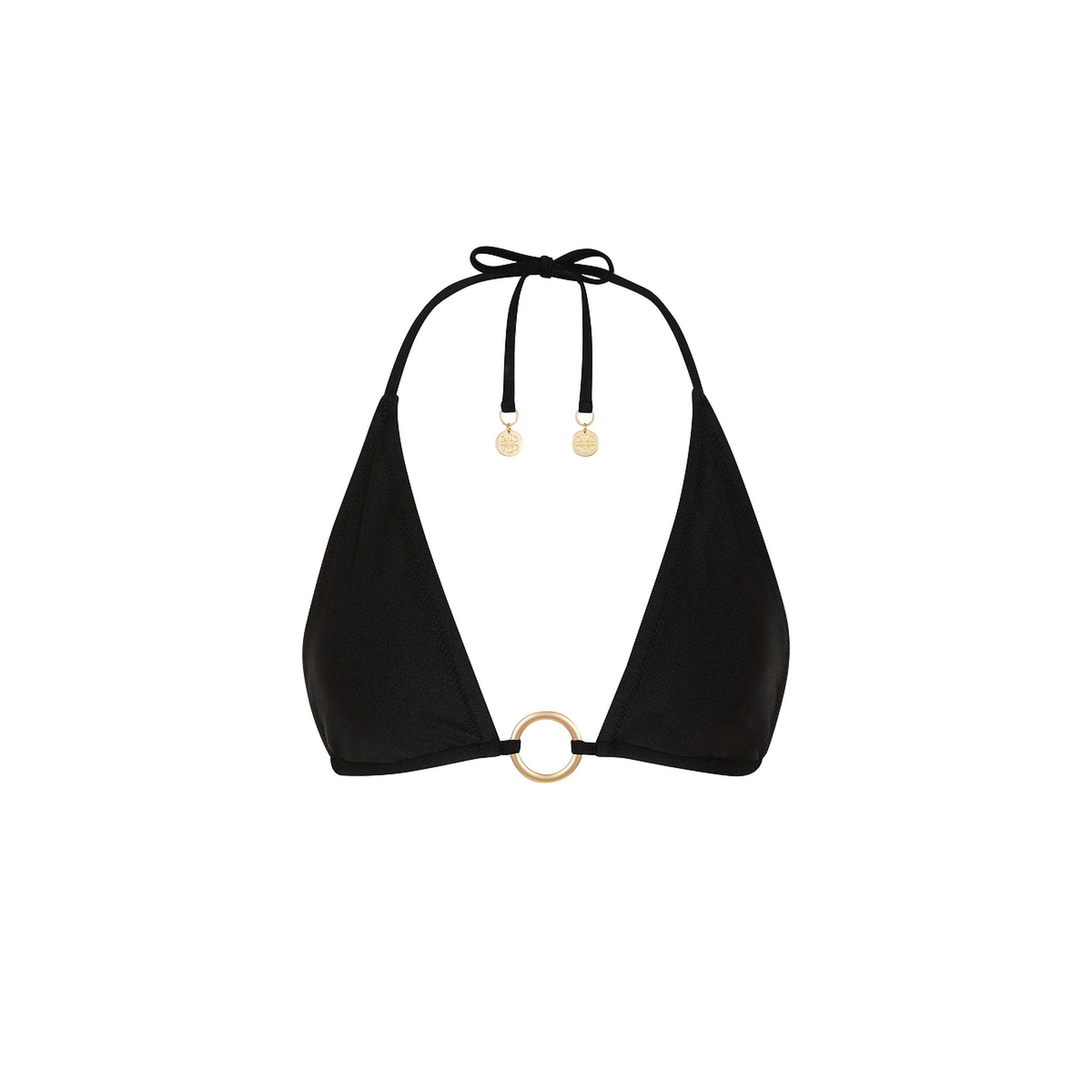 This halter bikini top takes a modern and sophisticated twist on the classic halter design, featuring an eye-catching centre O ring detail. It's simple yet flattering triangle fit is perfect for those who want a staple bikini for all occasions! Ideal for those who like to feel secure but also enjoy a minimal look.