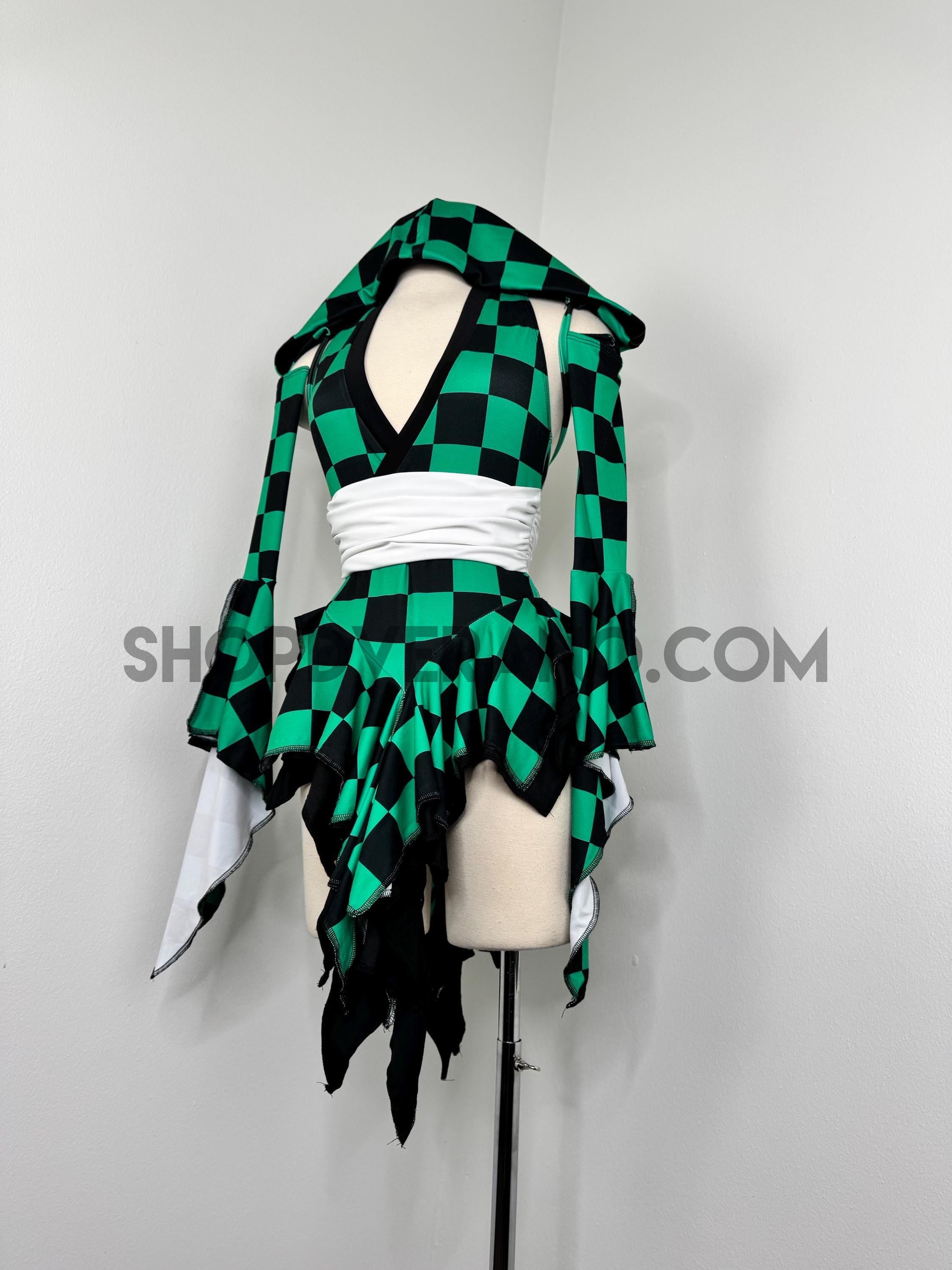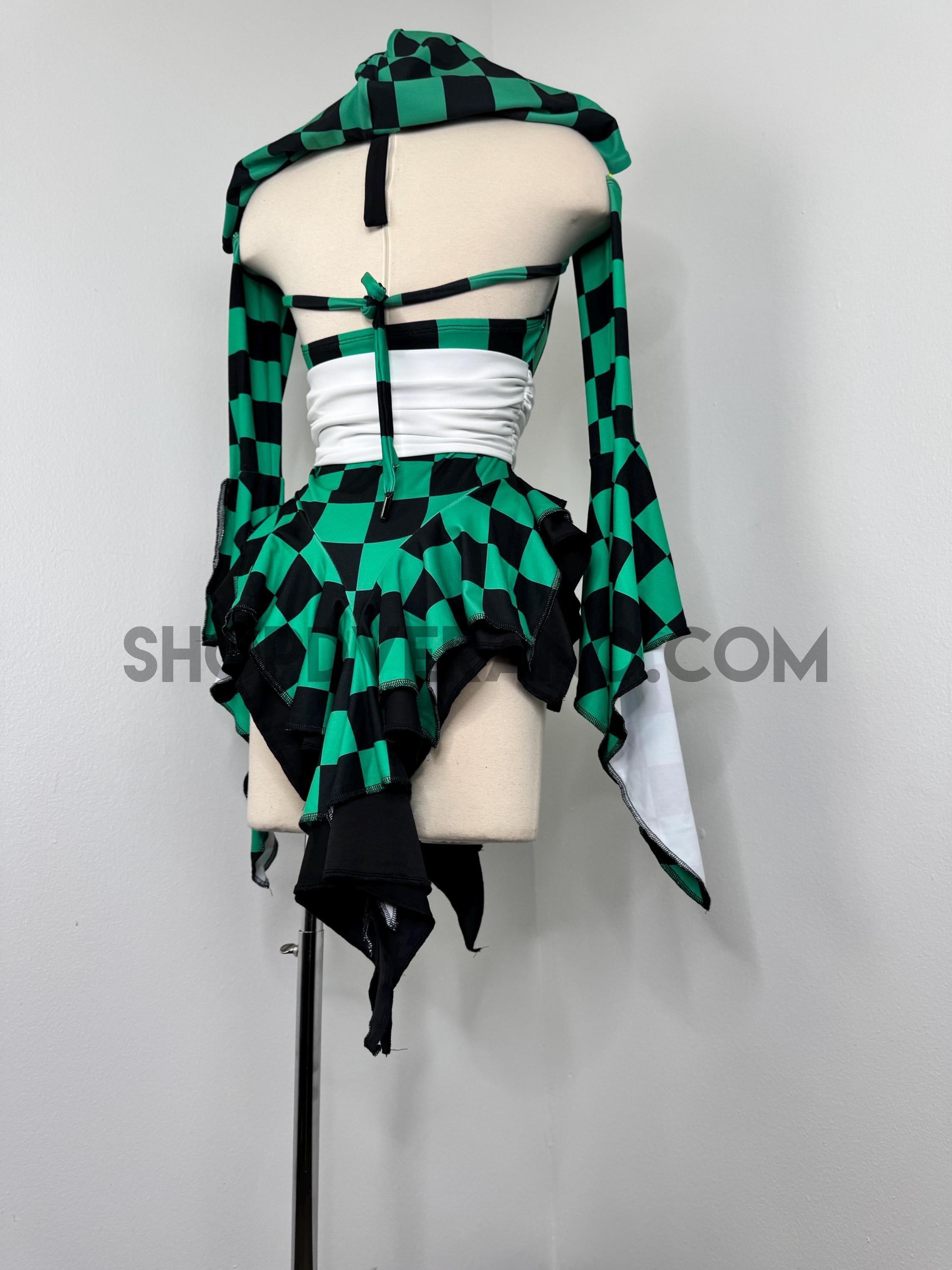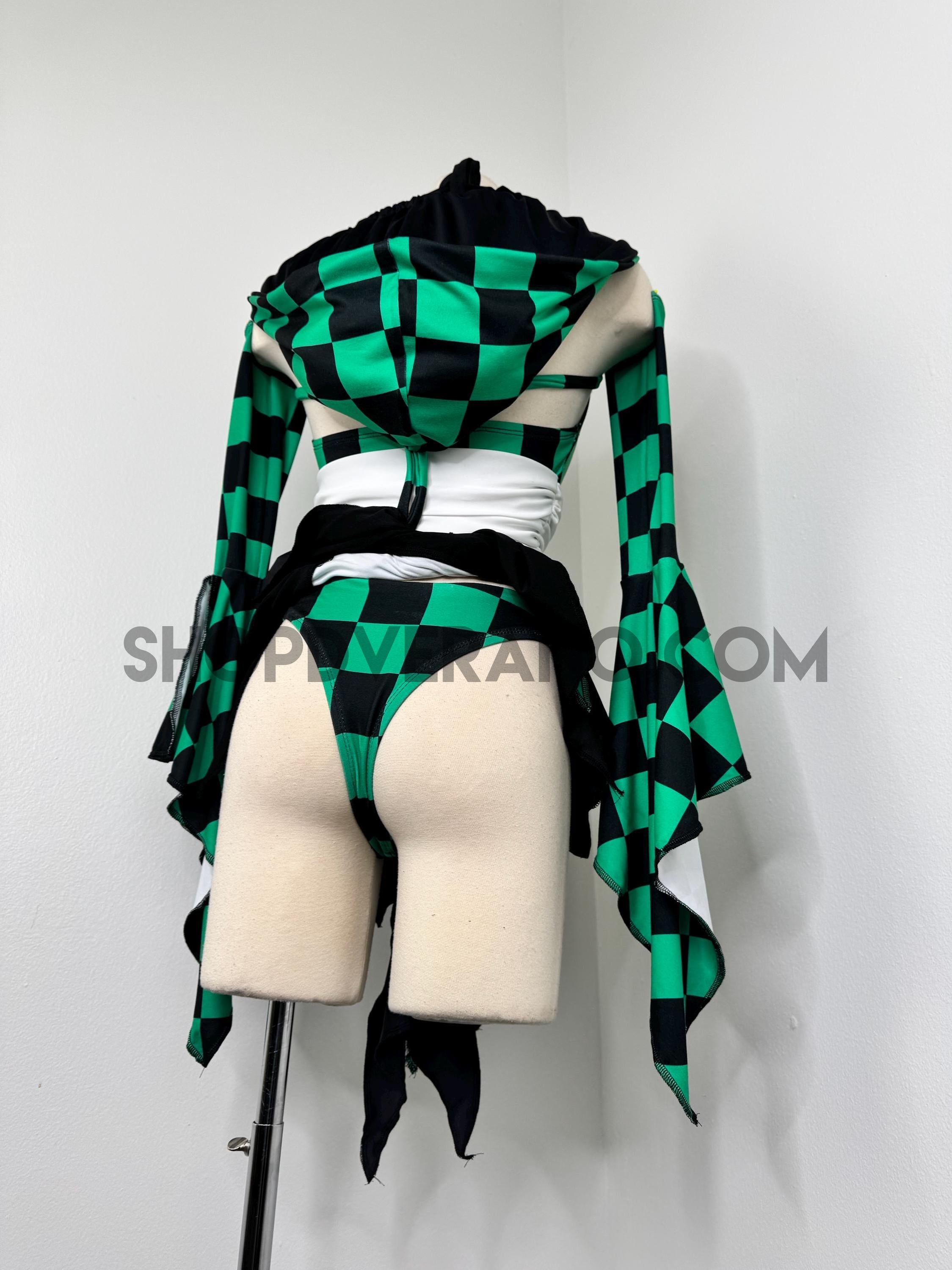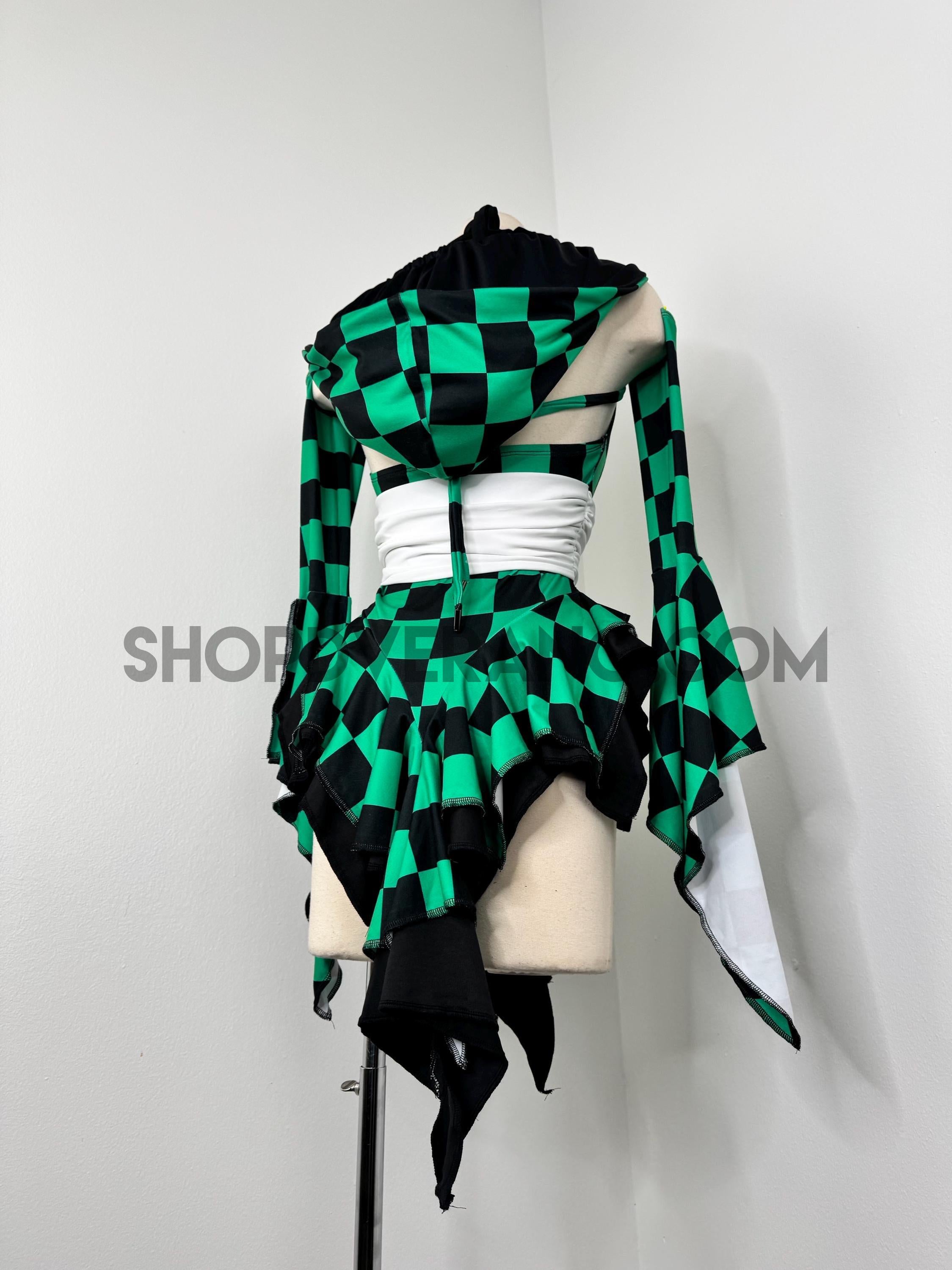 Designed in a signature forest green and black contrasting checkered details, the Solartide Fairy Set reflects harmony between strength and flow. Crafted from high quality 4-way stretch fabric, it hugs your curves while remaining breathable and comfortable for long nights of dancing, exploring, and creating moments.