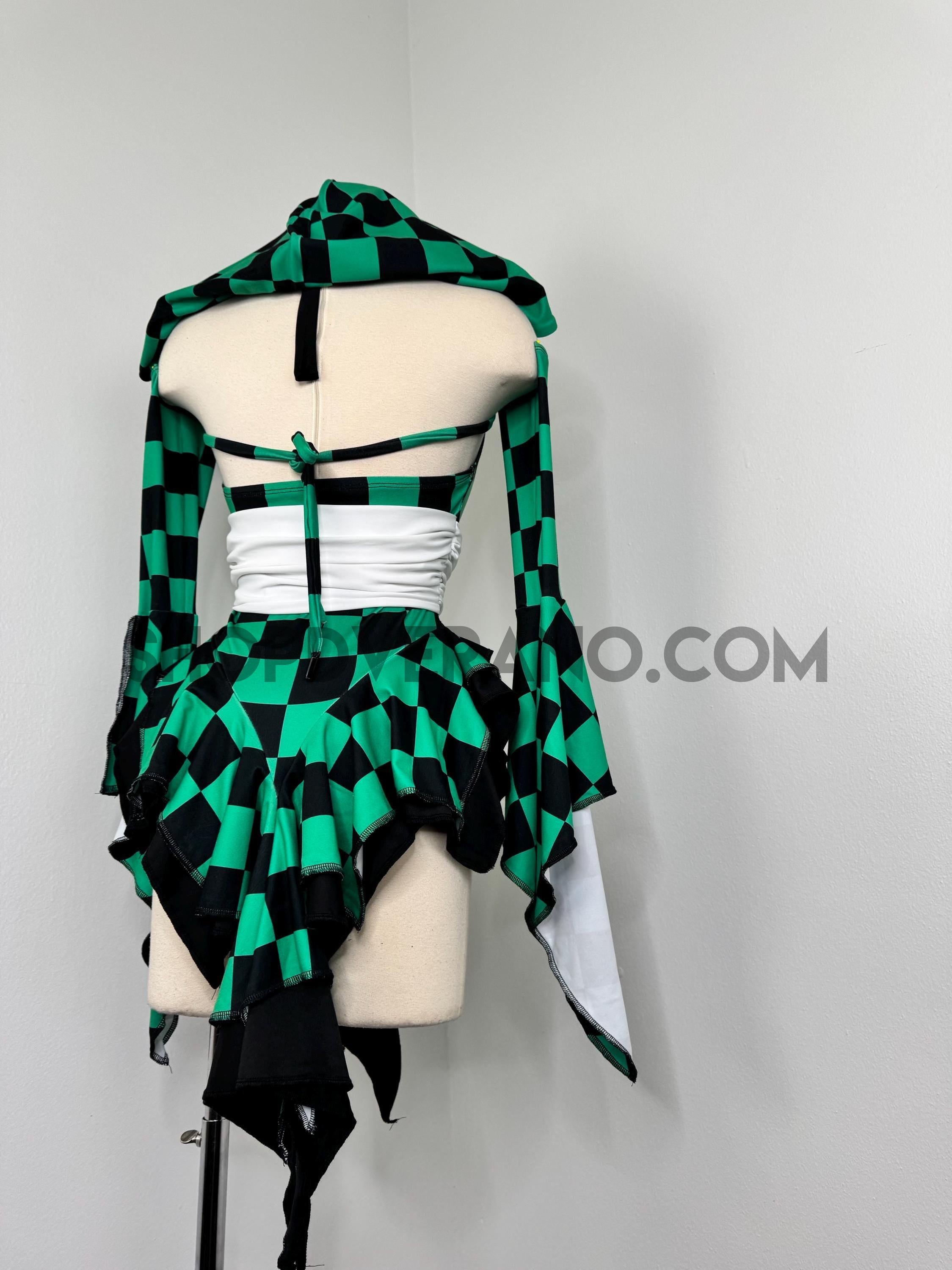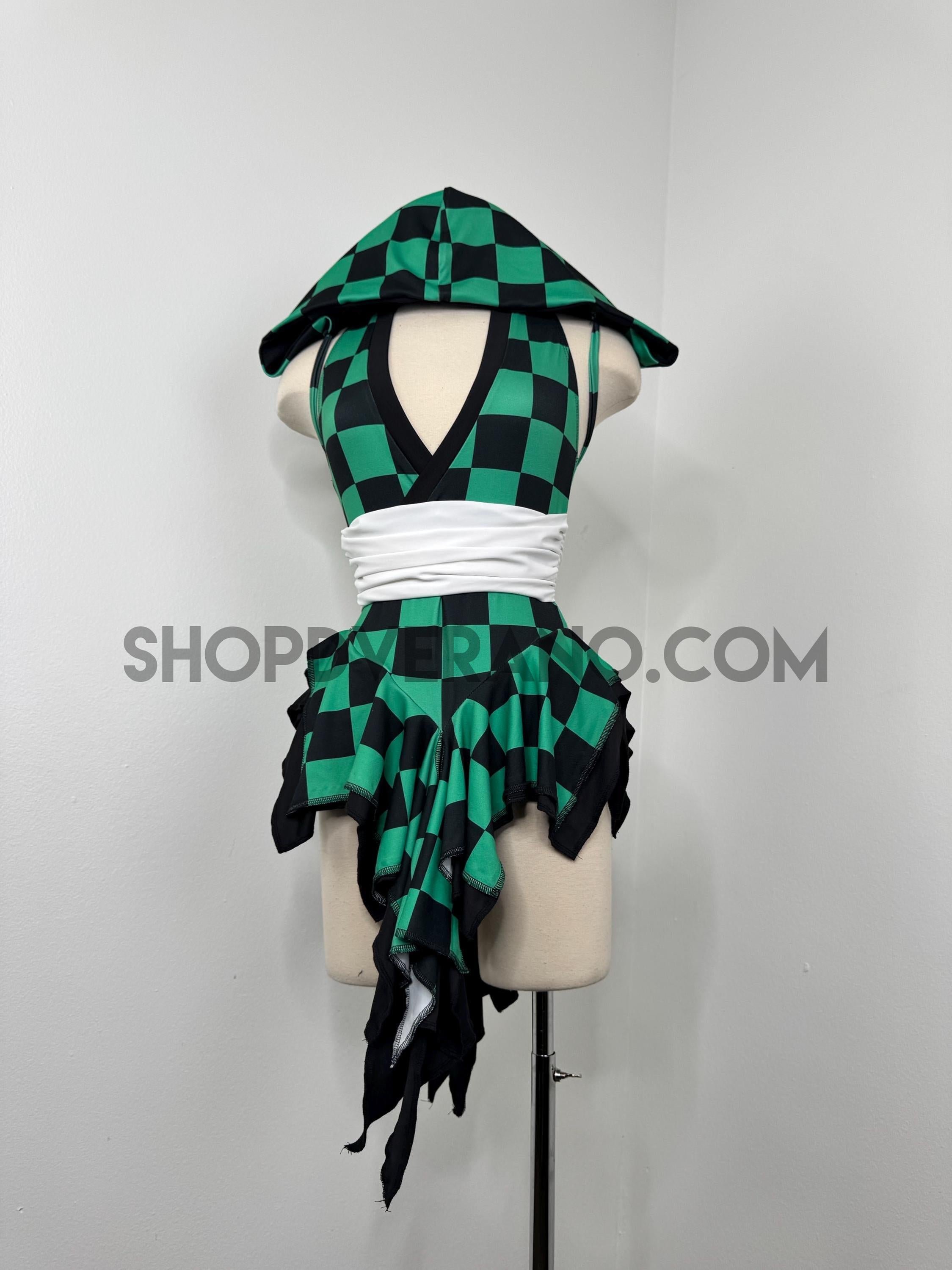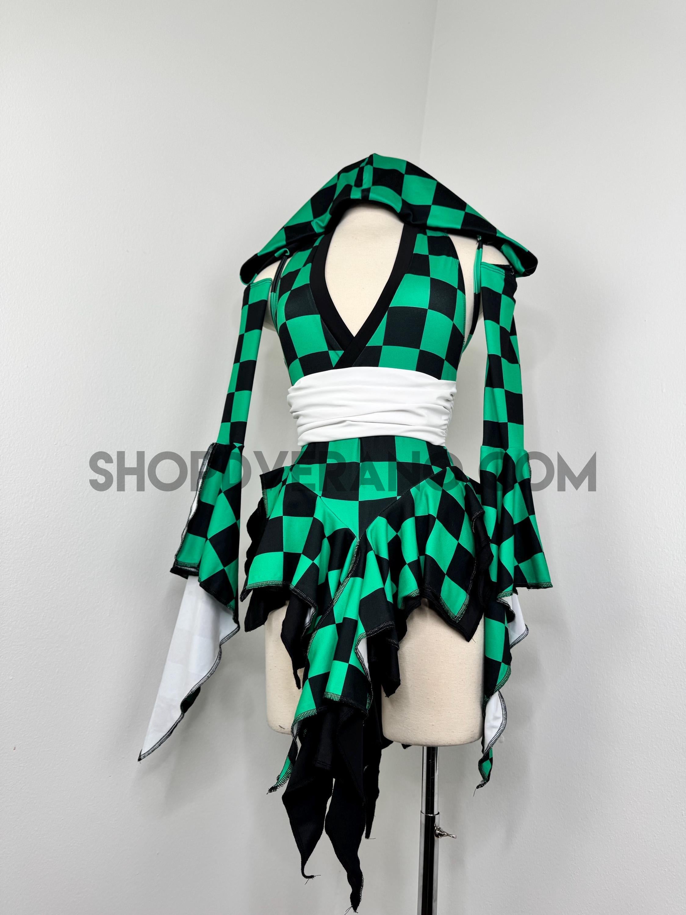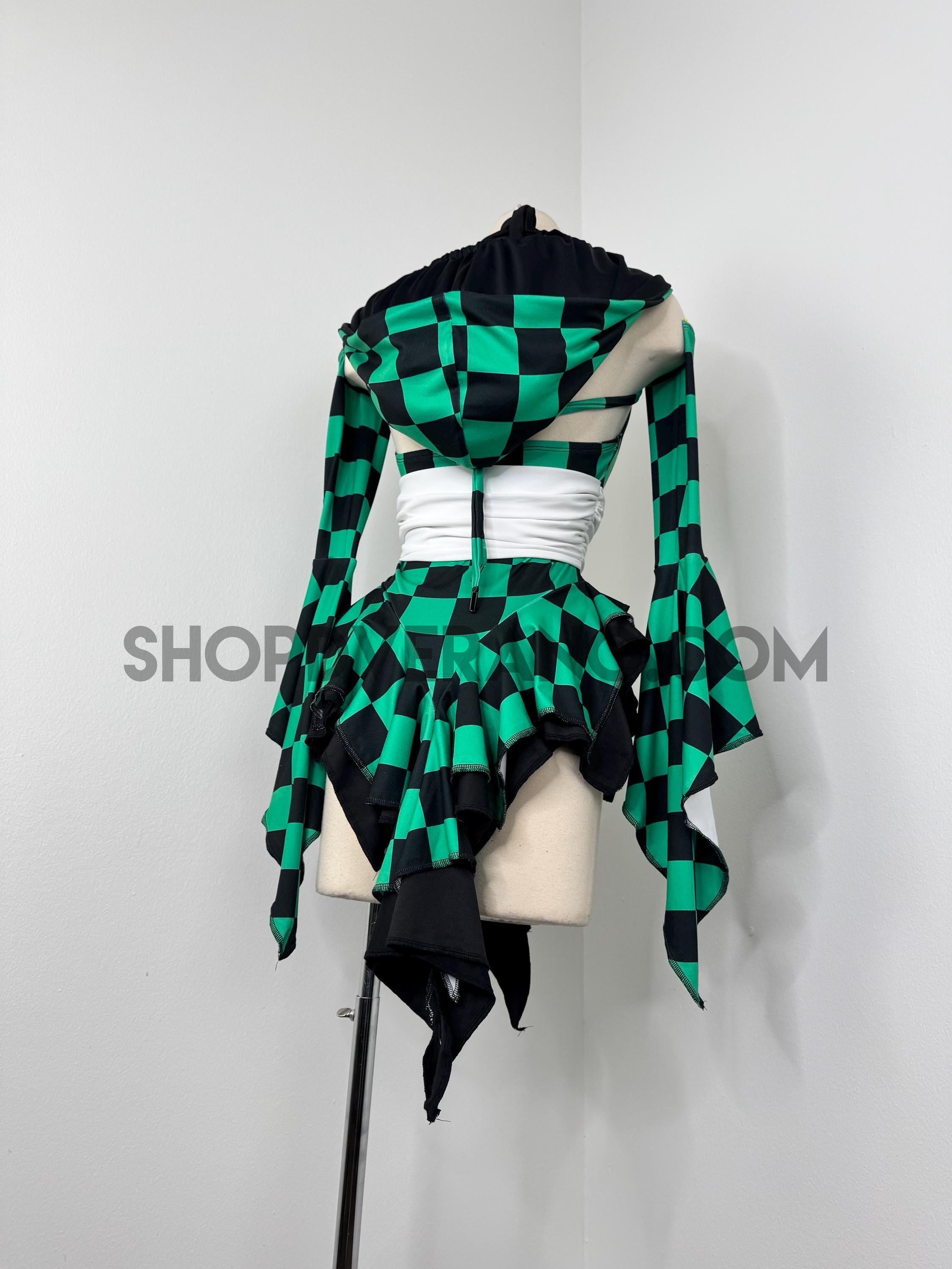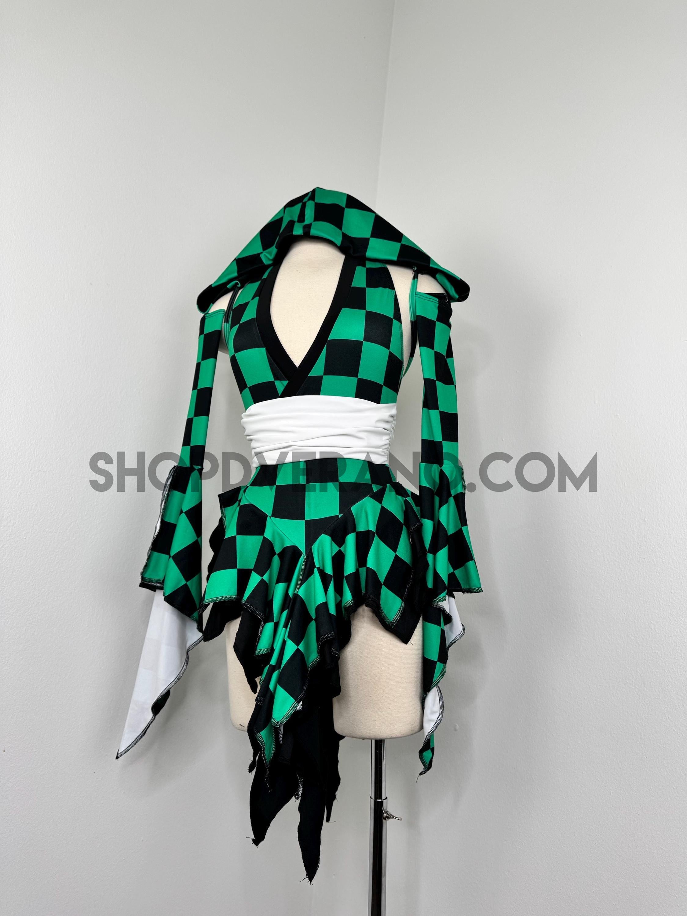 Designed in a signature forest green and black contrasting checkered details, the Solartide Fairy Set reflects harmony between strength and flow. Crafted from high quality 4-way stretch fabric, it hugs your curves while remaining breathable and comfortable for long nights of dancing, exploring, and creating moments.