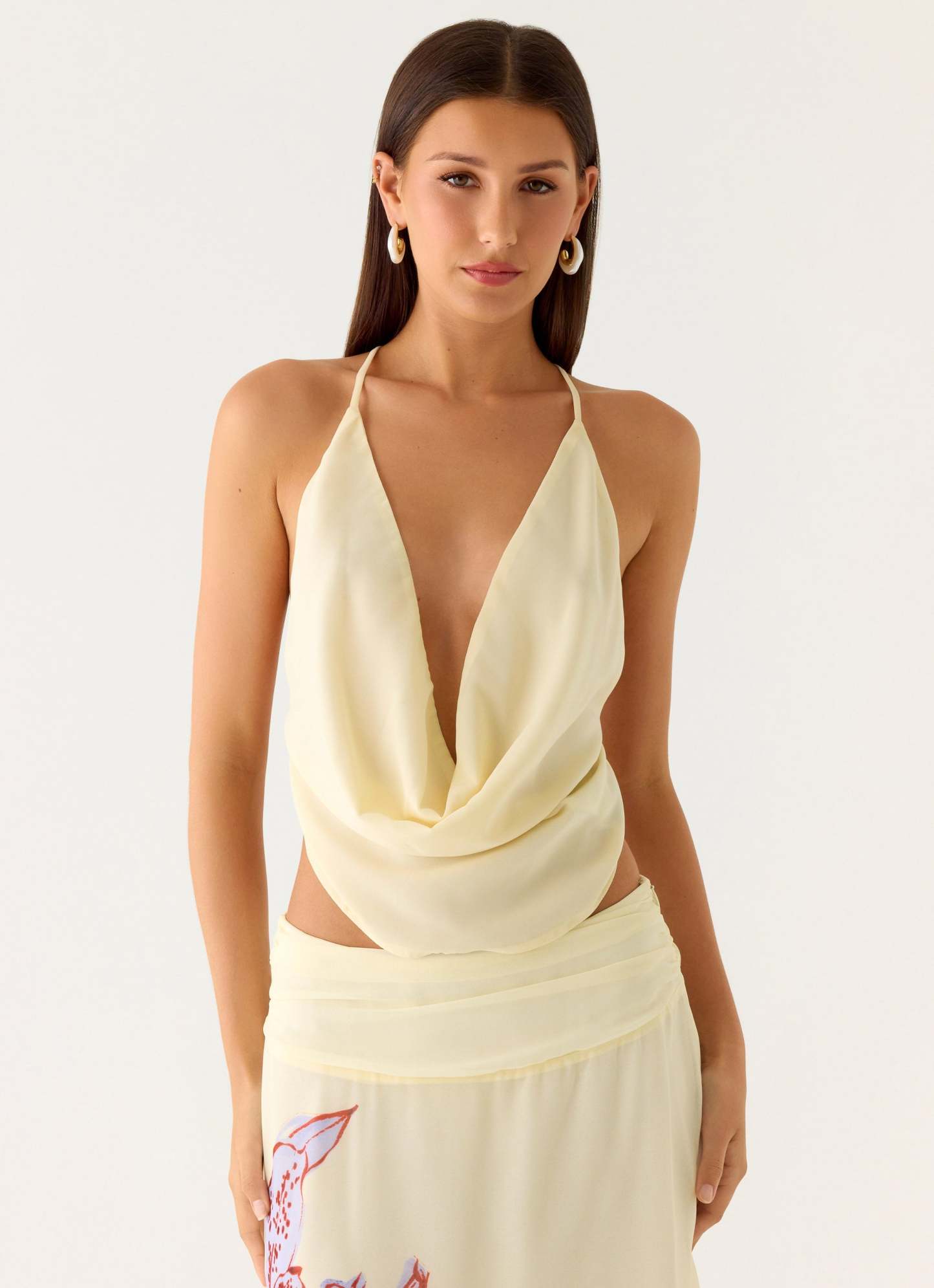 The Sweet Charm Cowl Neck Top is a chic and versatile piece featuring a low front cowl and a back criss-cross with thin adjustable straps, perfect for layering or wearing solo for a sleek look.